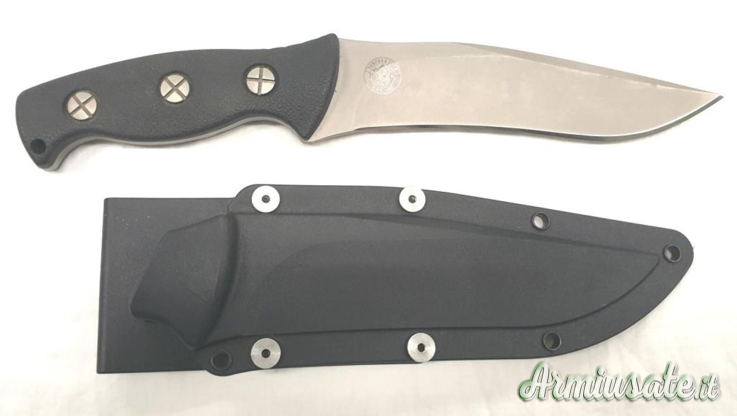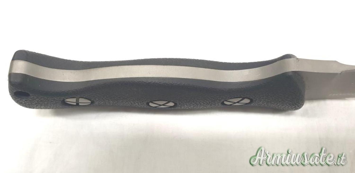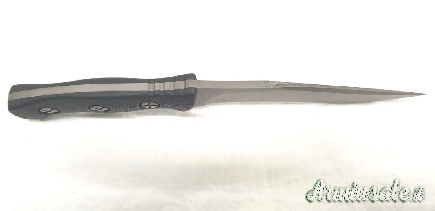 Coltello proveniente da collezione, mai usato, leggeri segni da contatto e frizione con il fodero in materiale plastico; il filo è assolutamente perfetto
