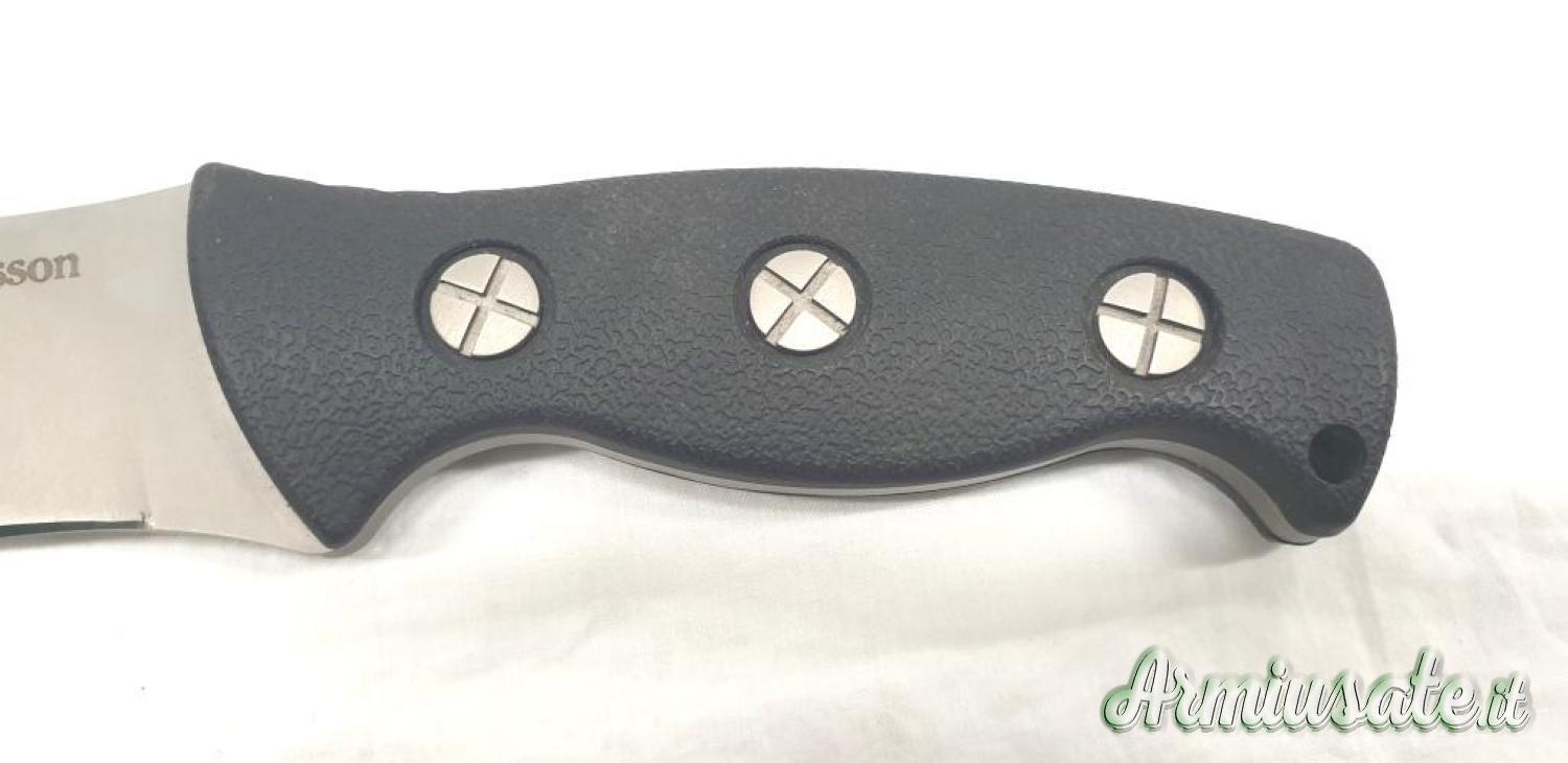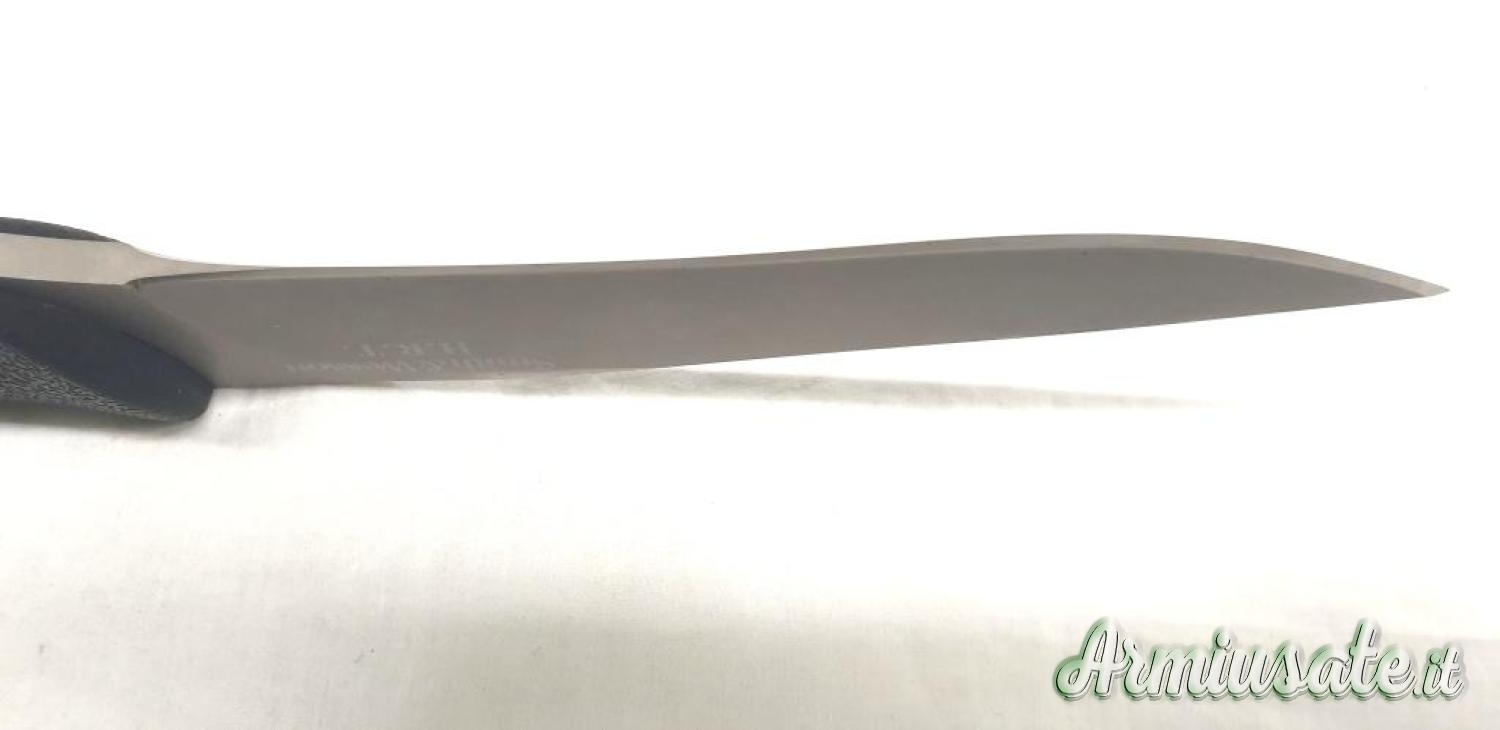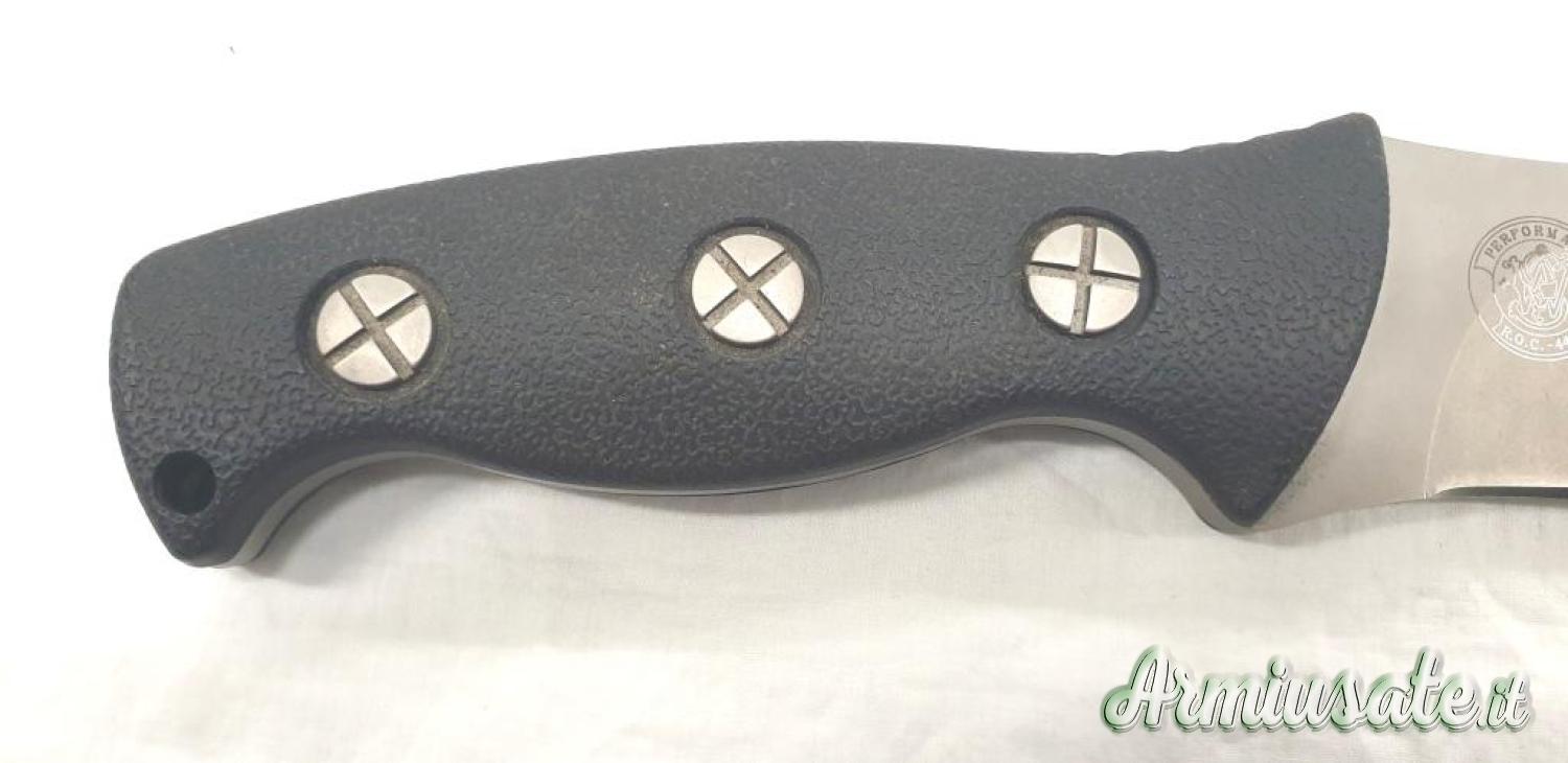 Coltello proveniente da collezione, mai usato, leggeri segni da contatto e frizione con il fodero in materiale plastico; il filo è assolutamente perfetto
