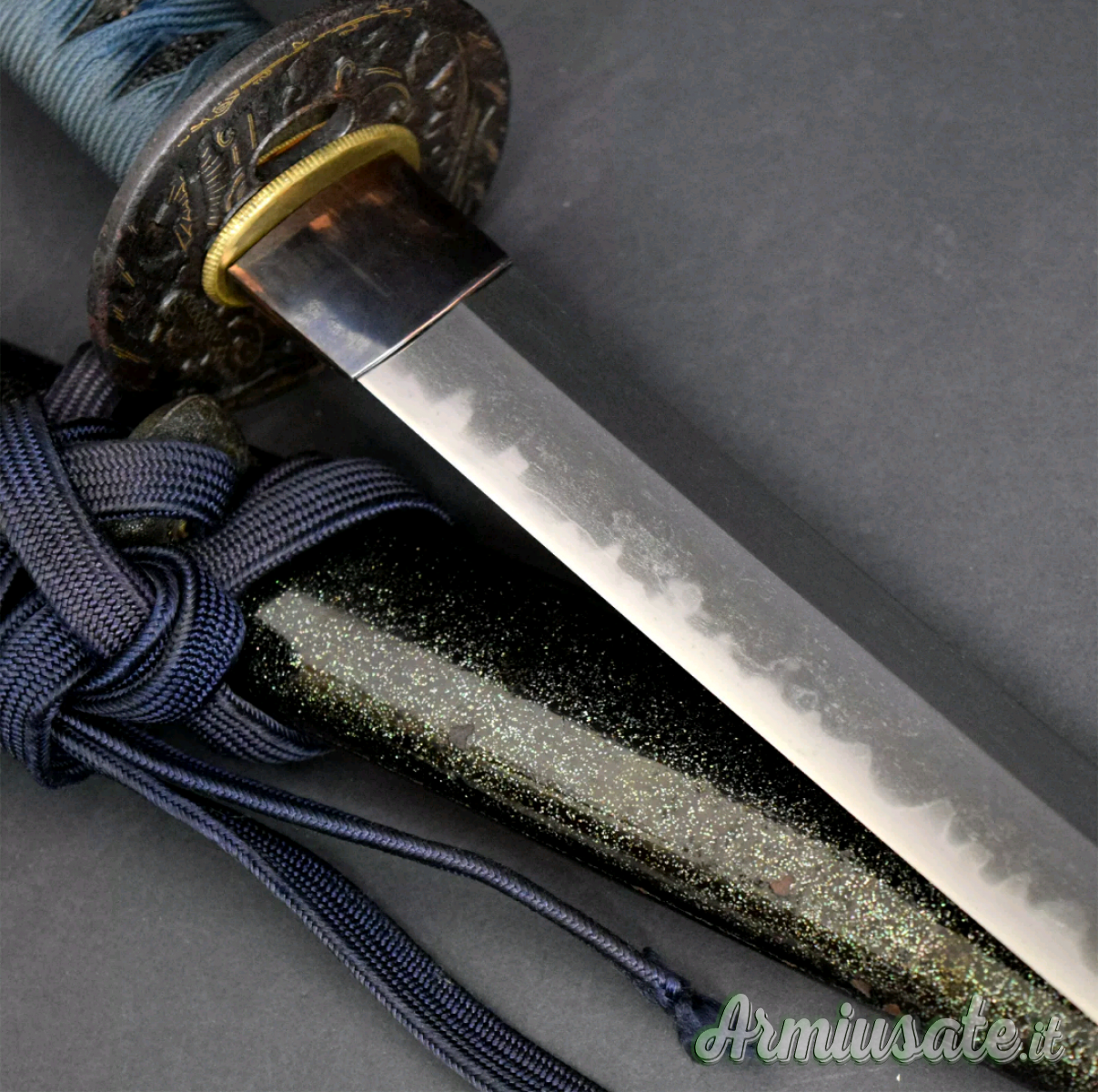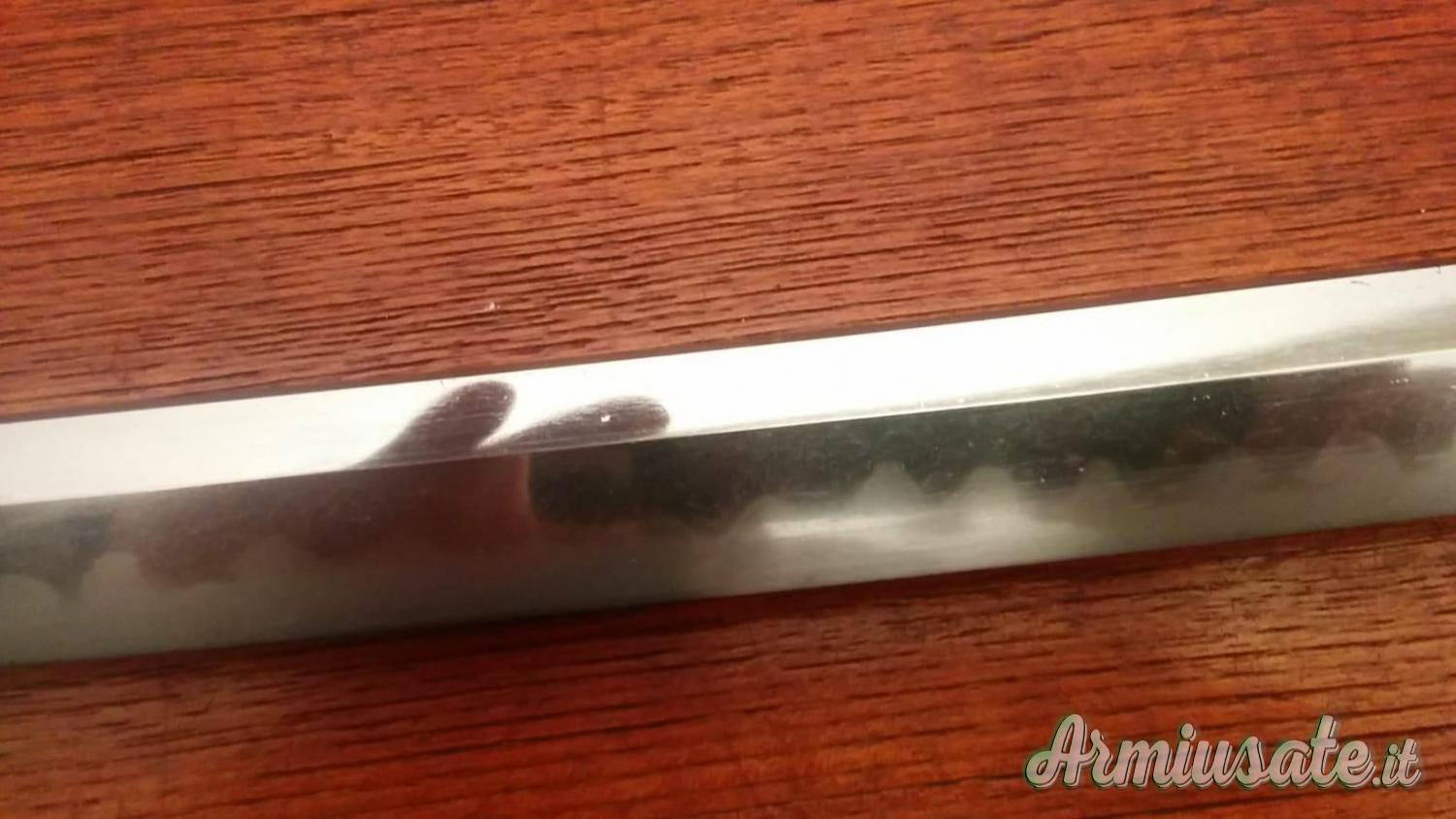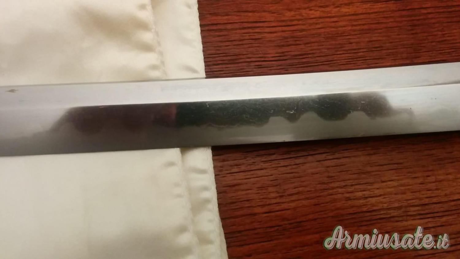 kissaki importante,acciaio splendente con riflessi blu cangiante sull' hamon(linea di tempra)
