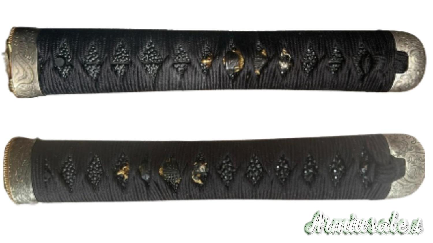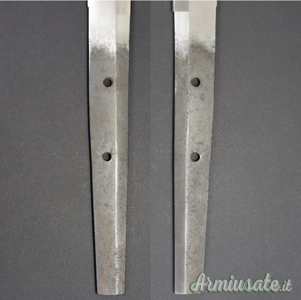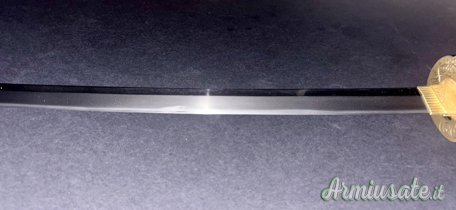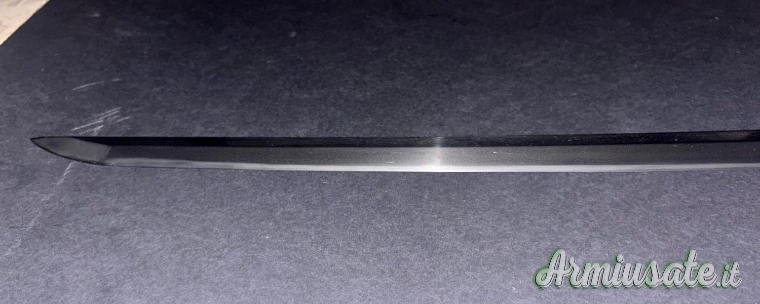 Lama lunga 70.01cm, in ottime condizioni generali, con koshirae Edo completo di fuchi e kashira in argento, saya sabbiata rosso/nero e ko-giri in argento.