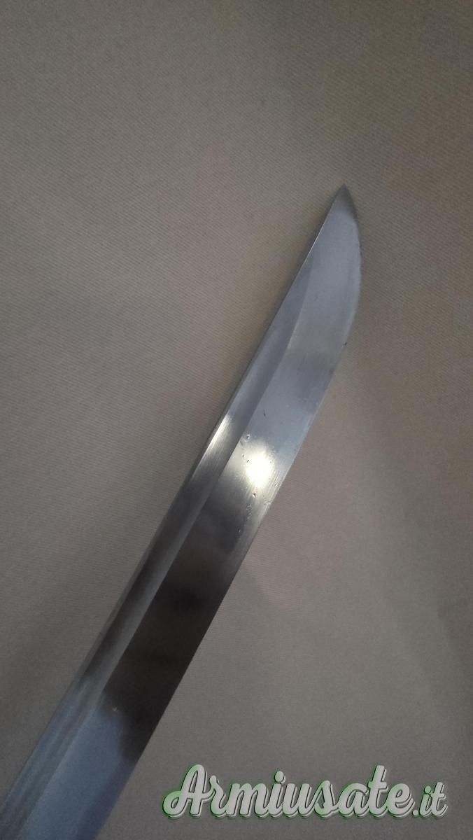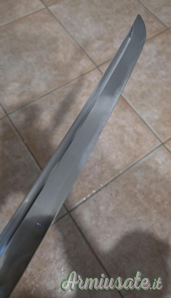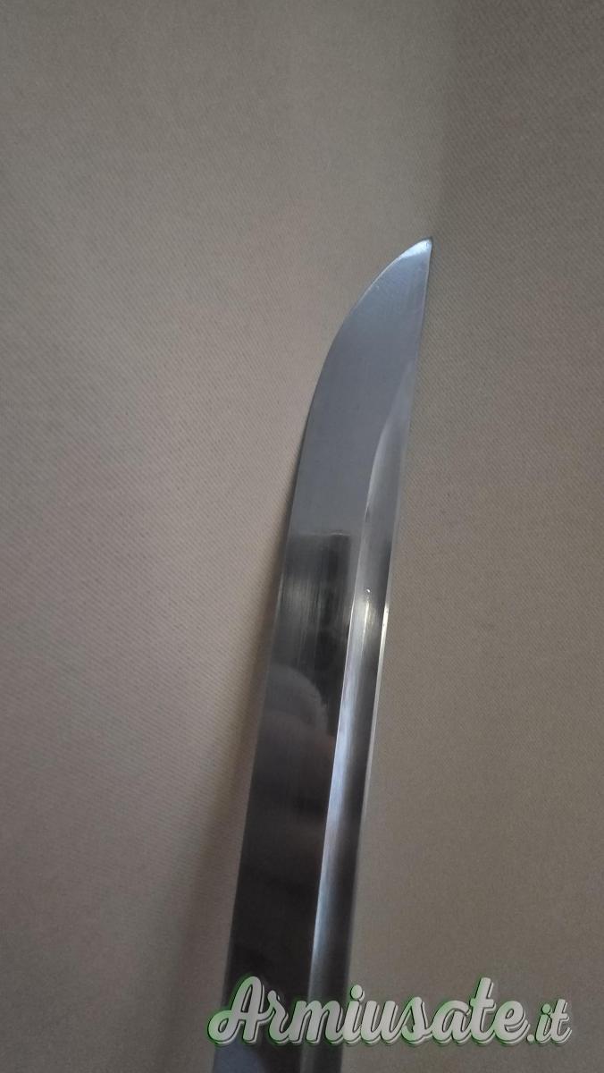E' stata affilata poichè utilizzata a suo tempo per battodo e prova di taglio. Si presenta con custodia rigida originale. E' stata pulita con uchiko e olio per katana.