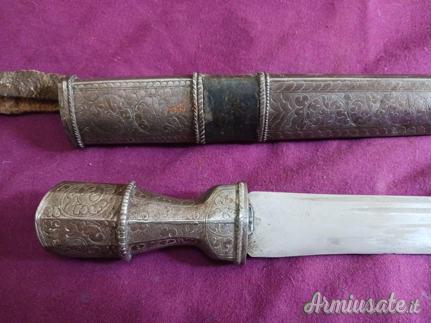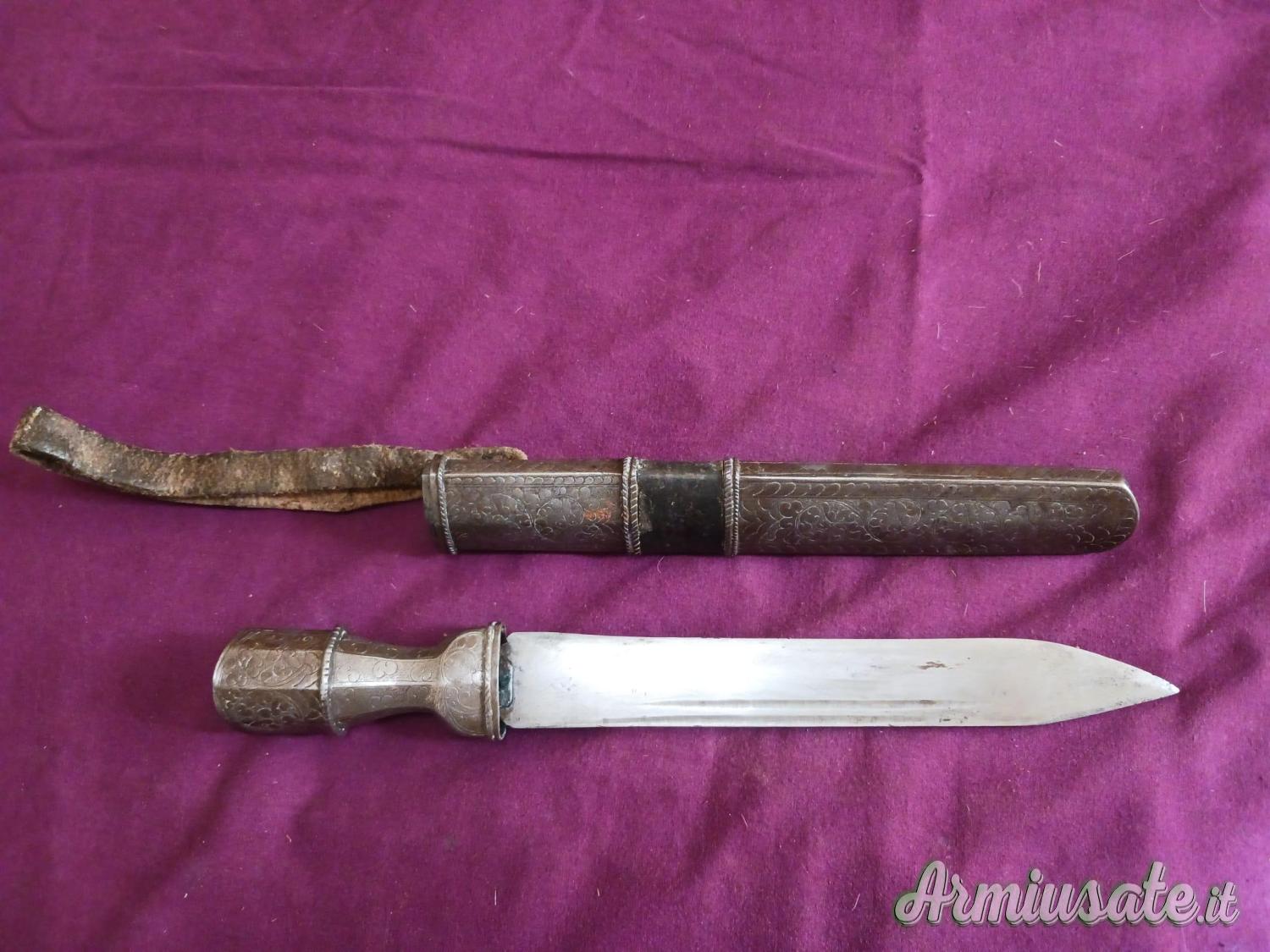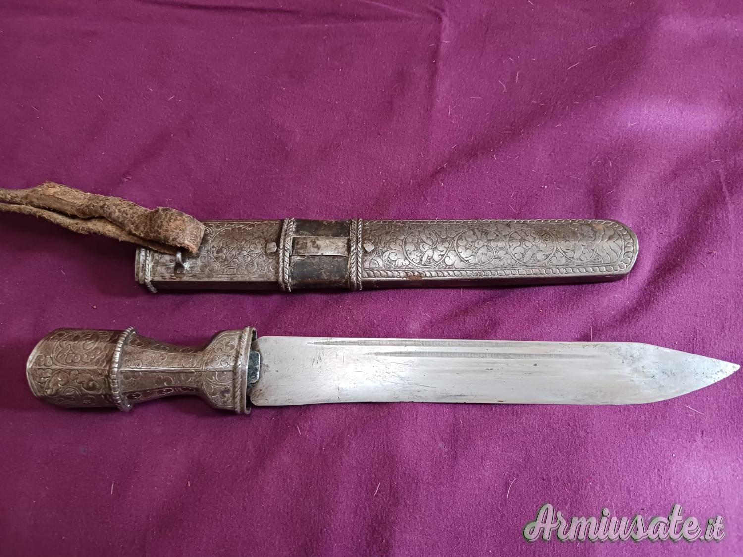 Pugnale tibetano Bhutan con fodero metallico decorato, lunghezza lama ca 22cm, regolarmente in denuncia