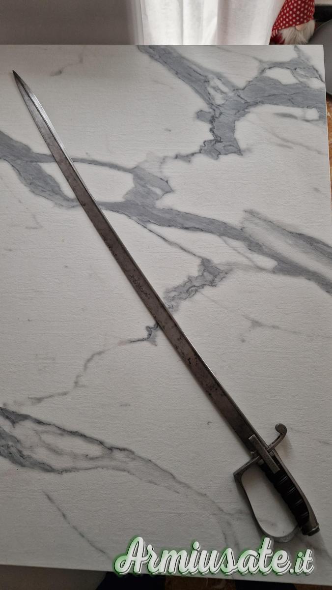 Sull'elsa è presente un punzone con scritto "Bianco Torino", mentre sul dorso della lama "Coulaux ainé a Klingenthal"