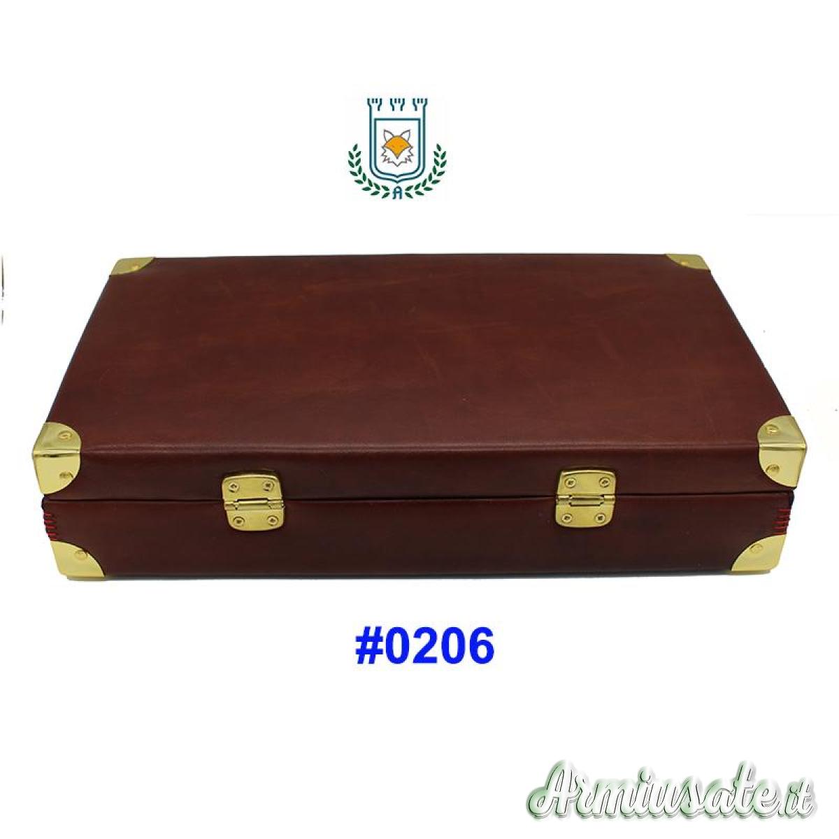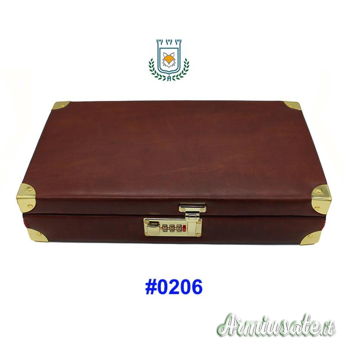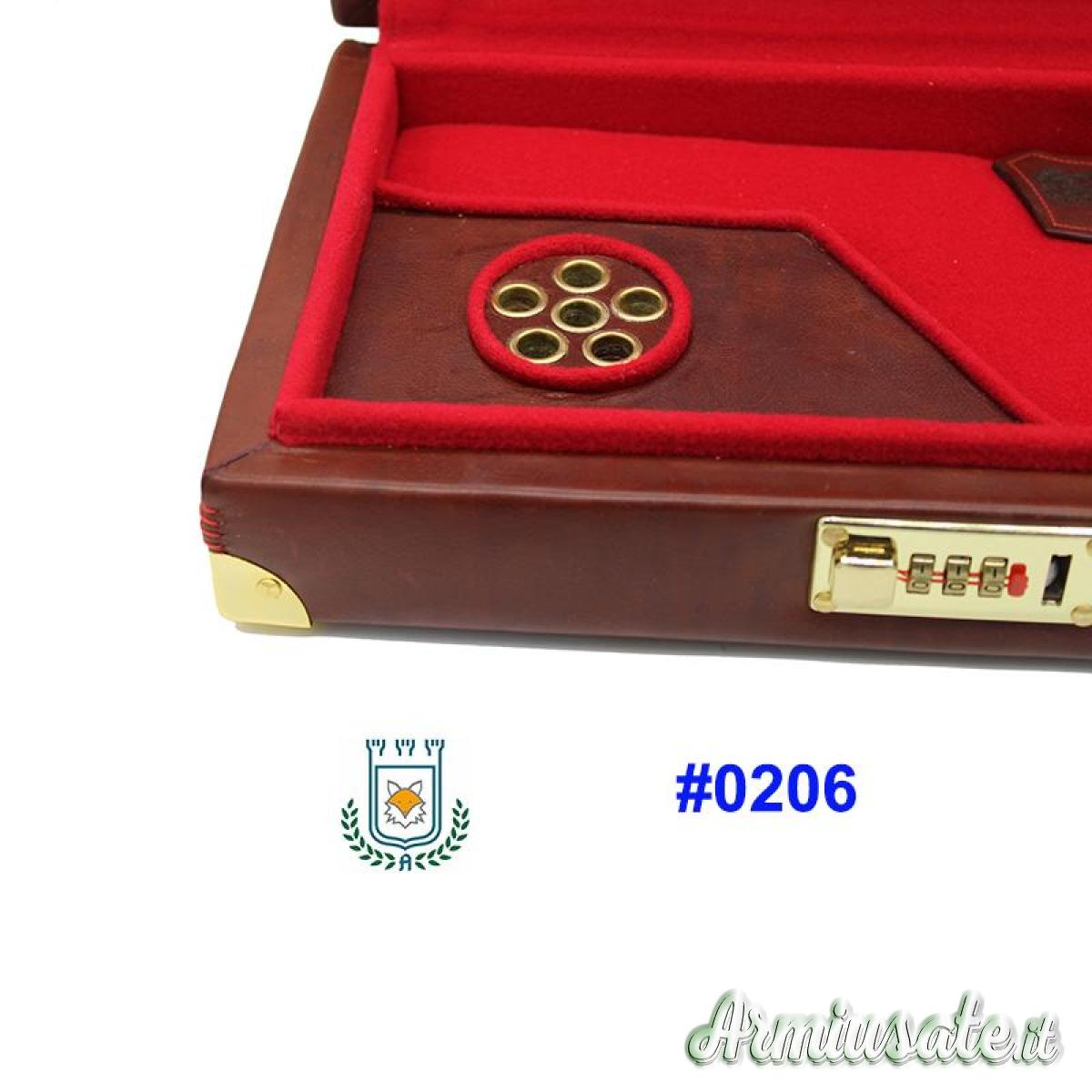 Accessori inclusi: Serratura con combinazione, Piedini.Pelle Vitello tamponato a mano. Tamburo per 6 ctg.