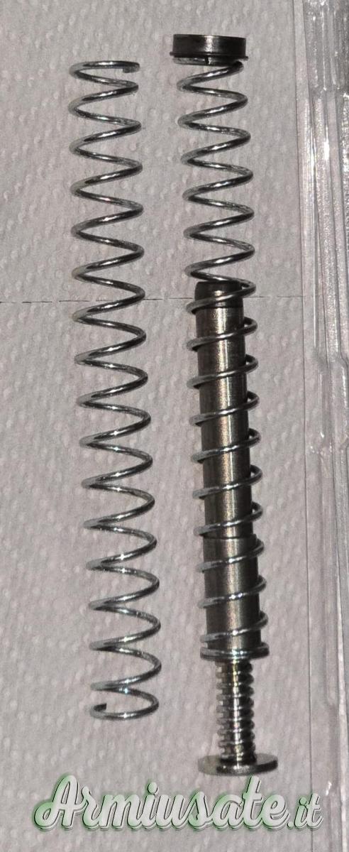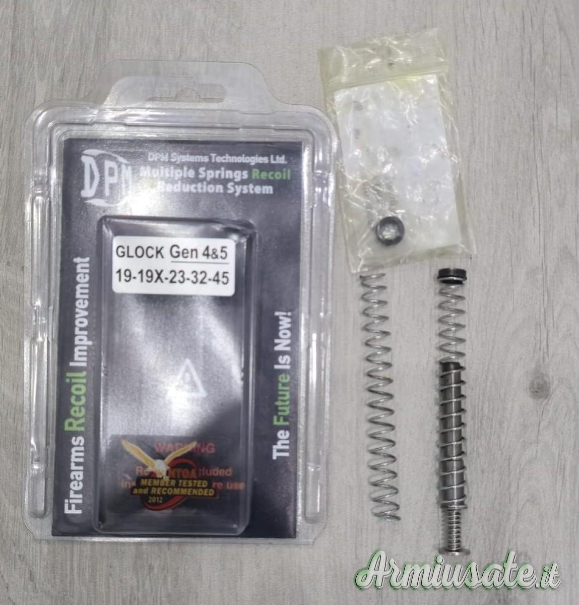 Sistema di riduzione del rinculo DPM Systems per Glock. Sostituisce il gruppo dell'asta di guida del calcio e la molla di rinculo per una riduzione ottimale del rinculo, assorbendo gradualmente l'energia dal colpo e rallentando il carrello prima del suo impatto con il telaio della pistola.