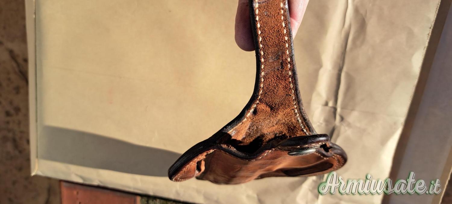 L'interno è foderato in pelle di daino trattata ai siliconi per non rovinare l'arma e favorire l'estrazione.