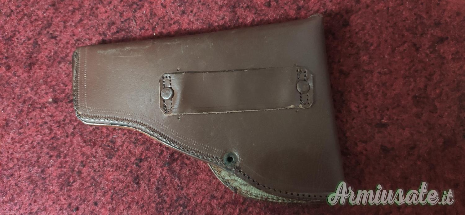 FONDINA ESTERNA VINTAGE IN CUOIO MARRONE PER PICCOLA AUTOMATICA TIPO BERETTA 950 O 21, WALTHER TPH OD ALTER PISTOLE IN CAL. 22 LR O 6,35