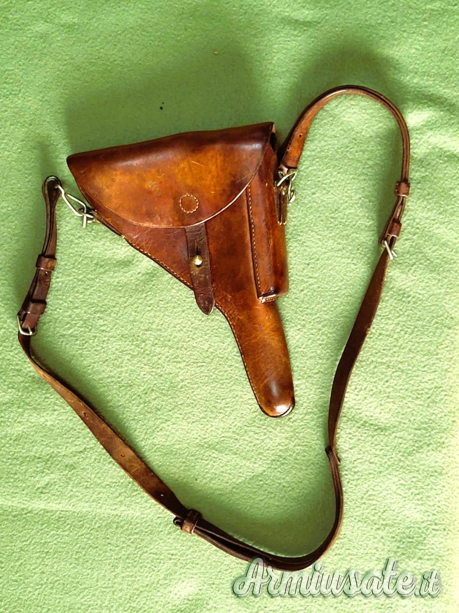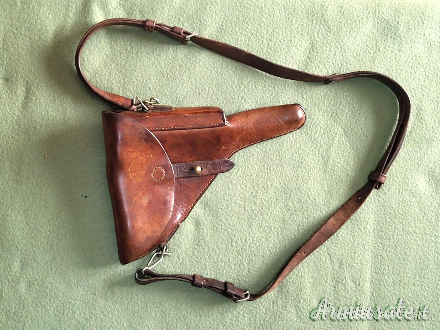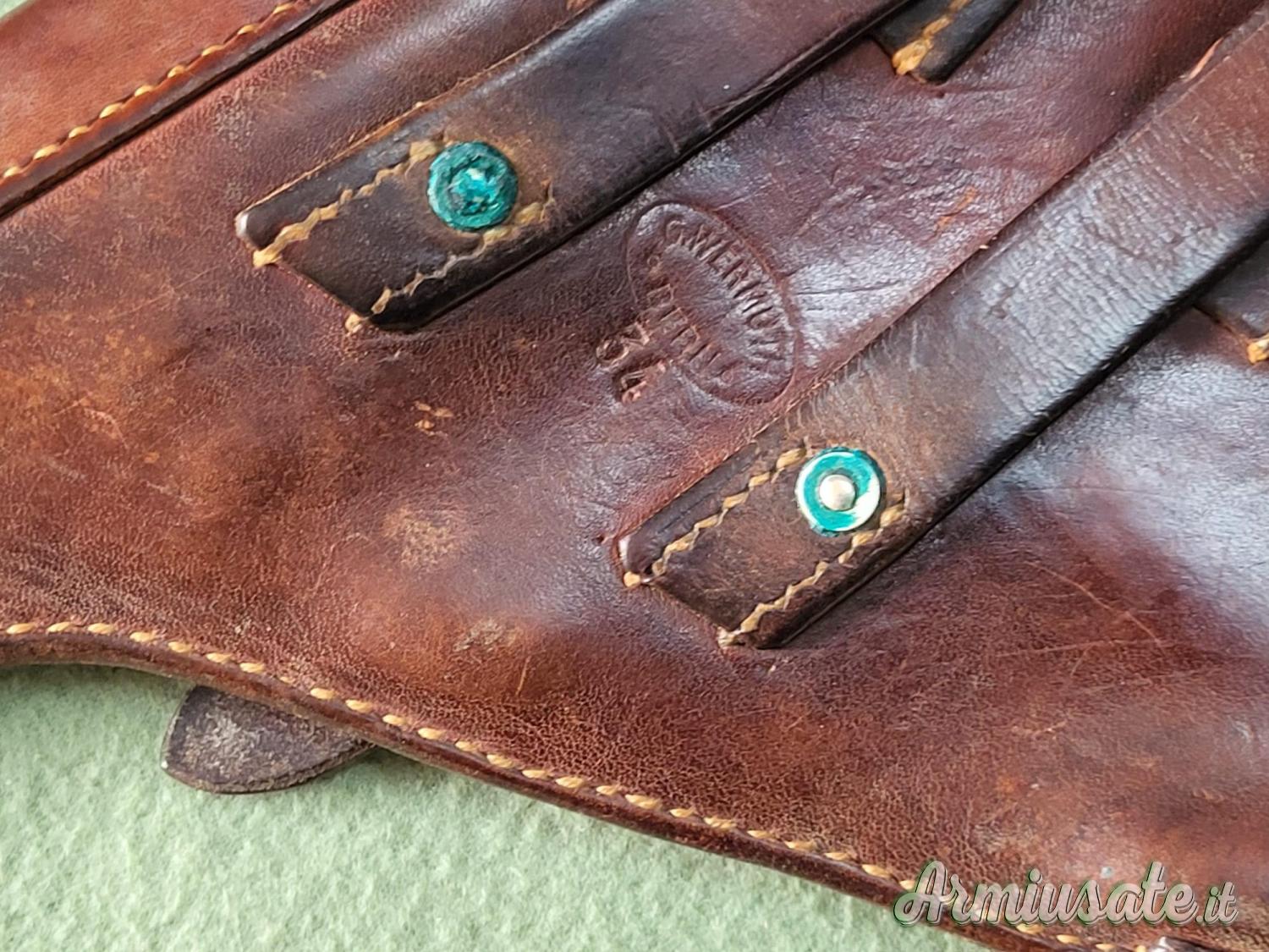 Originale ex ordinanza svizzera, con marchio del produttore e “37” a indicare l’anno di fabbricazione, che la rende adatta per tutti i modelli a partire dalla “guance rosse”; completa di spallaccio con moschettoni