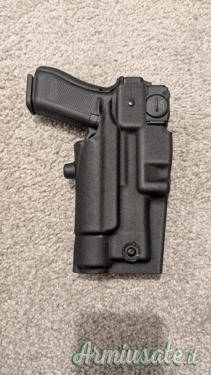 Tutti gli articoli in foto sono compresi nel prezzo. Ci sono anche dei pezzi custom per poter utilizzare la fondina con Glock17 Glock19 Glock 45 Glock 45 fto Glock 19 fto.
