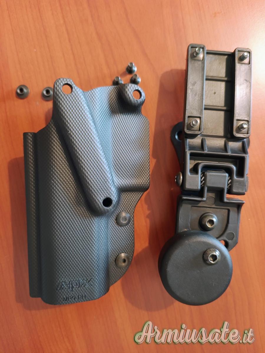 Fondina Ghost per APX e MP9 con attacco Stinger con piastra alluminio superleggera (compatibile fondine Civilian e Superghost) per tiro dinamico. Vendibili anche separatamente 25+25€ più ss, condizioni pari al nuovo