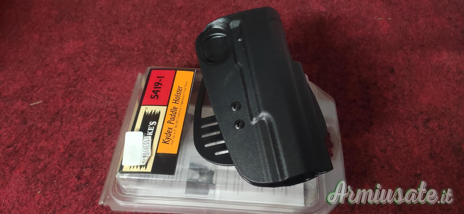UNCLE MIKE'S FONDINA KYDEX PADDLE #5419-1 IN PLASTICA SFORMATA PER PISTOLE TIPO 1911 CON CANNA DA 5", DI FACILE AGGANCIO ALLA CINTURA E SCARICO DEL PESO DELL'ARMA SULL'ANCA TRAMITE IL PADDLE INTERNO.