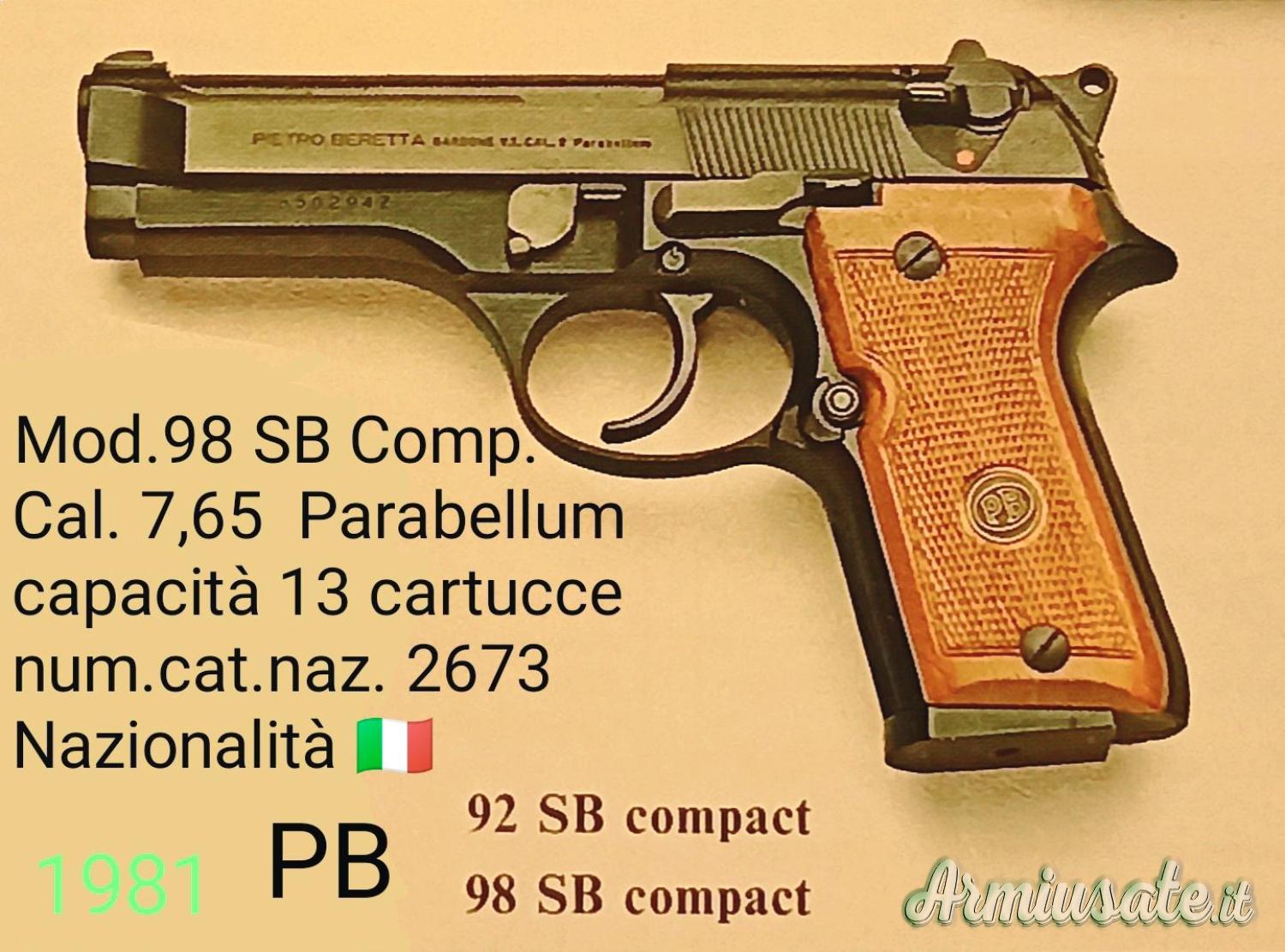 CERCO GUANCETTE IN LEGNO PER BERETTA 98 SB COMPACT PRIMO TIPO FUSTO DRITTO DEL 1981 COME ARMA NELLE IMMAGINI.
