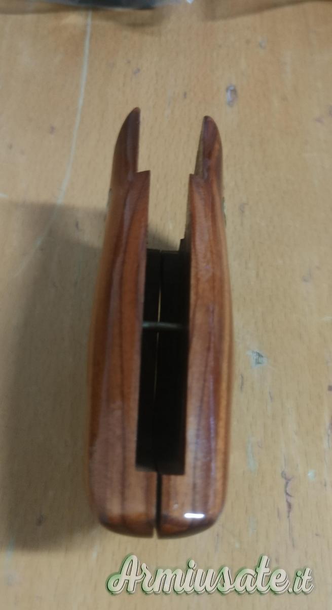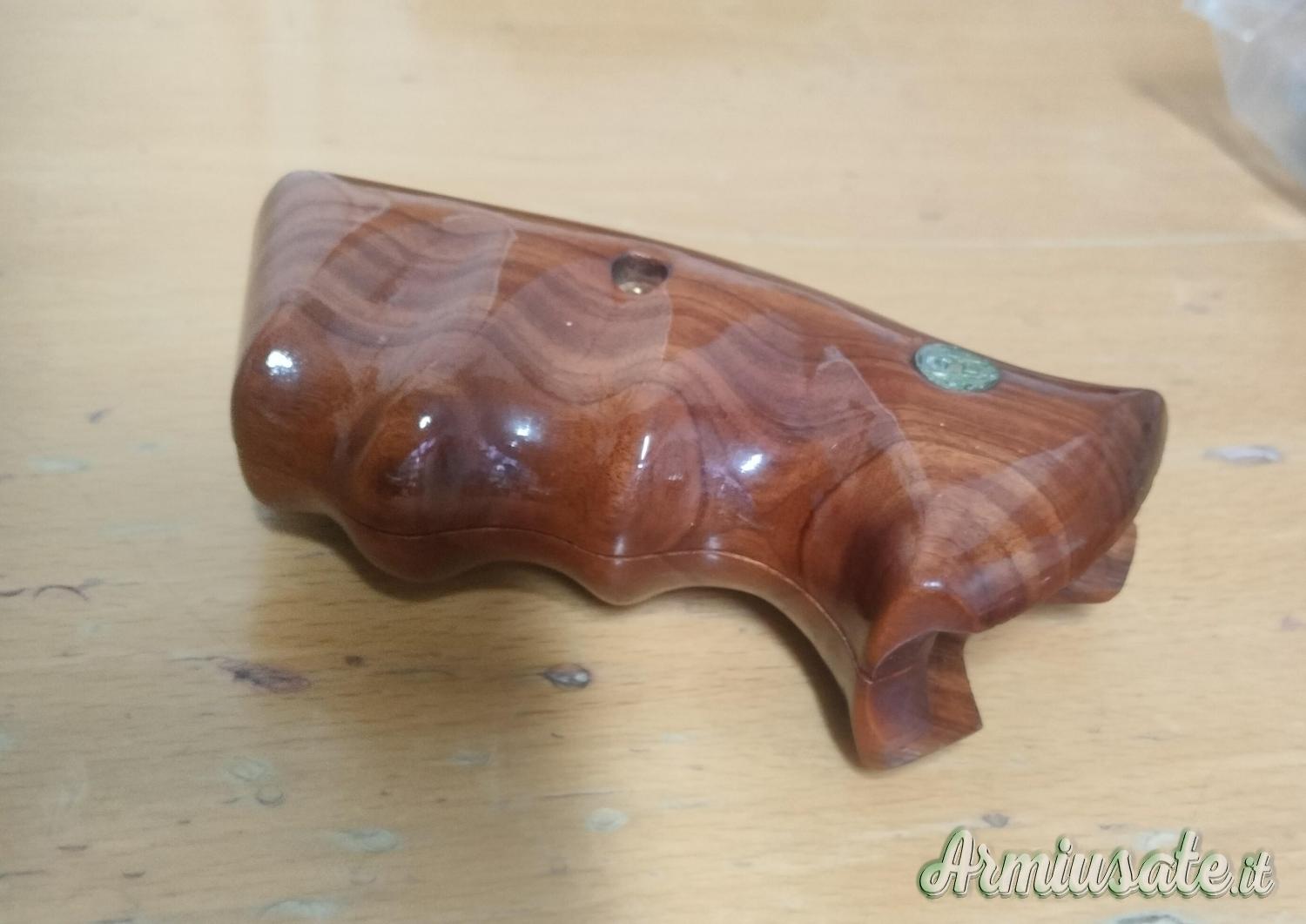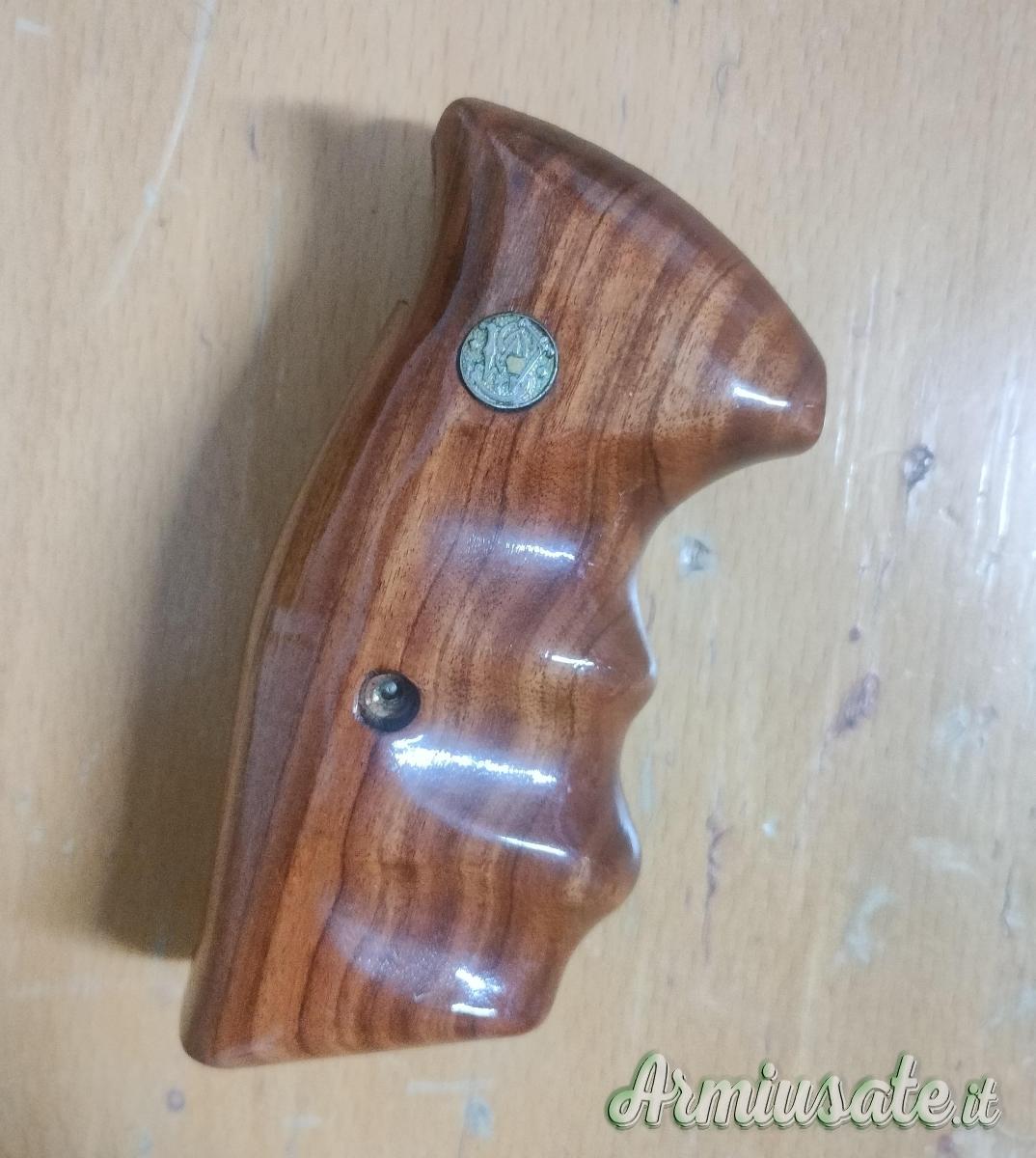 Guancette originali "Combat" con "speed loader cut" in legno per revolvers Smith & Wesson con telaio K (tipo 10, 14, 19, 66 ecc.) e telaio L (tipo 586, 686 ecc.), con calcio Square Butt. Le impugnature sono allo stato del nuovo.