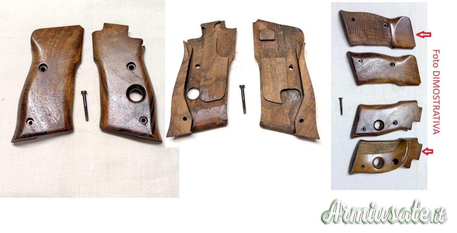 Guancette USATE in buono stato modificate artigianalmente senza poggiapollice per pistola Beretta mod. 76 -2°modello per destri e sinistri in noce comprensiva di una viti di montaggio. segni di lavorazione mancate di un pezzettino VEDI FOTO cerchio rosso possono presente segni , di maneggiamento o stoccaggio o del tempo