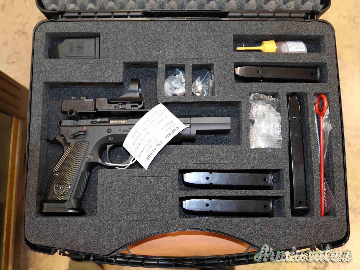 (77/97/02) AFFARE Pistola CZ mod.CZ 75 TS CZECHMATE in calibro 9X19 sportiva. Arma nuova proveniente da collezione privata completa di tutto il suo corredo. Eventuali aloni o macchie che potete vedere nelle foto sono residui olio e grasso di protezione o riflessi del flash.