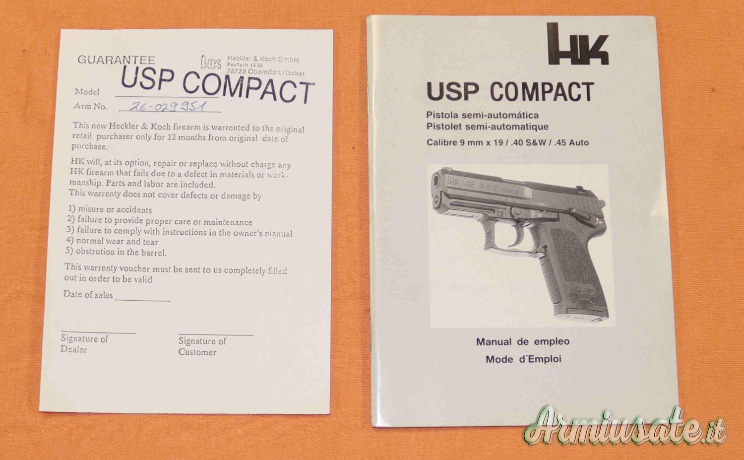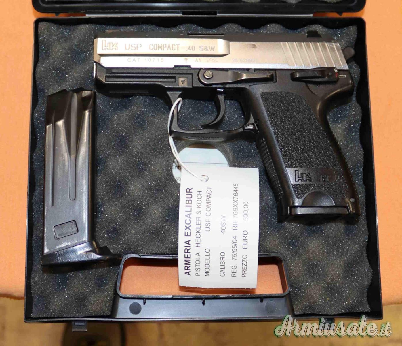 as(76/95/04) AFFARE Pistola Heckler Kock mod. USP Compact in calibro 40SW in discrete condizioni. Eventuali aloni o macchie che potete vedere nelle foto sono residui olio e grasso di protezione o riflessi del flash.