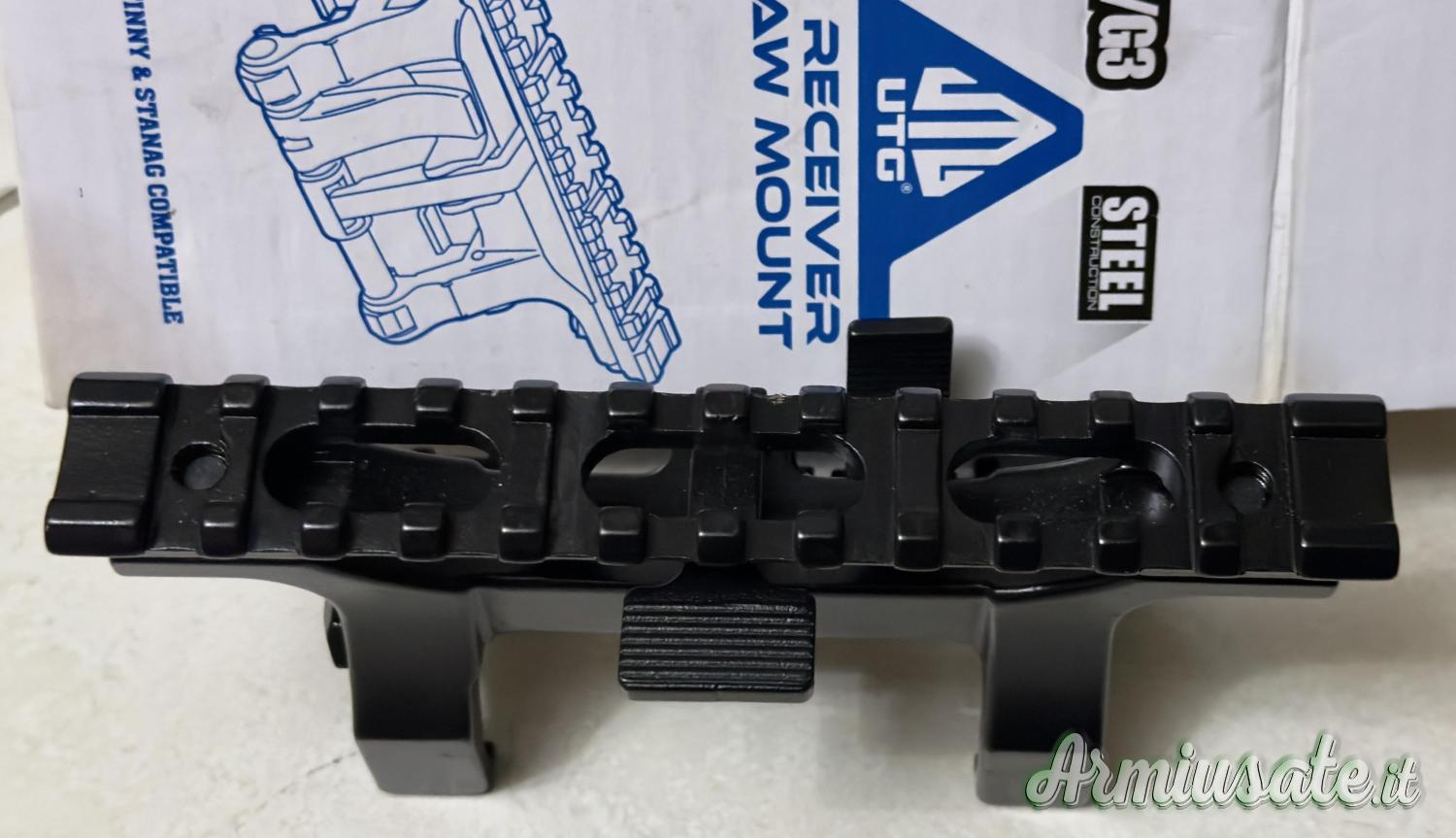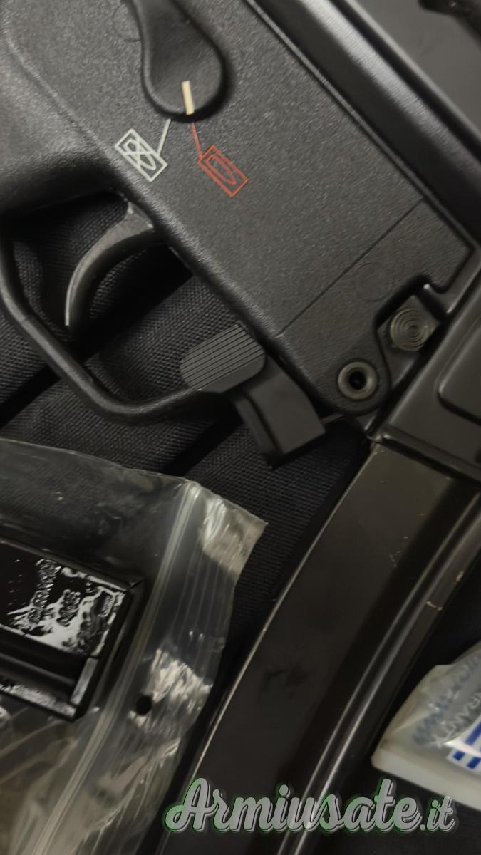 Monta, spegnifiamma HK originale, calcio retrattile B&T originale, sgancio caricatore maggiorato, rail alluminio, caricatore originale a corredo da 10 colpi, più 2 da 30 colpi regolarmente denunziati, staffa utg con attacco rapido per ottica, borsa trasporto Unkle Mike dedicata.