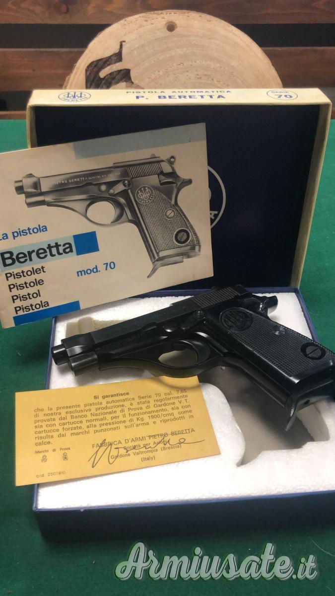 Le Beretta 70 furono prodotte durante tutti gli anni sessanta e gli anni settanta. Disponibile inizialmente solo nella versione calibro 7,65 mm, ma in più varianti dal lato estetico, il modello 70 base (il più diffuso tra i civili) fu seguìto da una versione "S", dalle forme più sportive, in calibro 9 corto, ed anche da una versione riprendente le precedenti linee classiche con l'aggiunta delle guancette in madreperla.