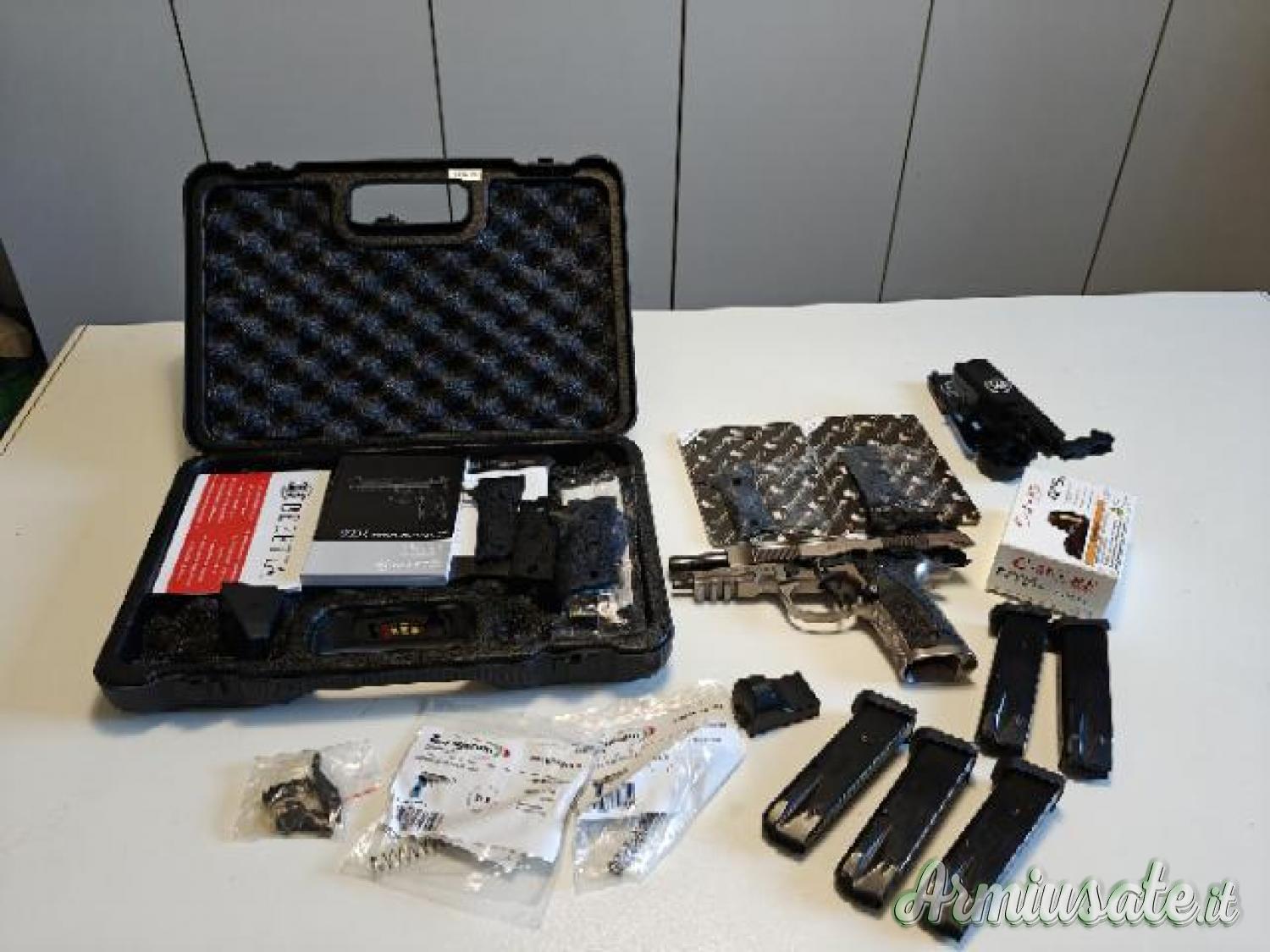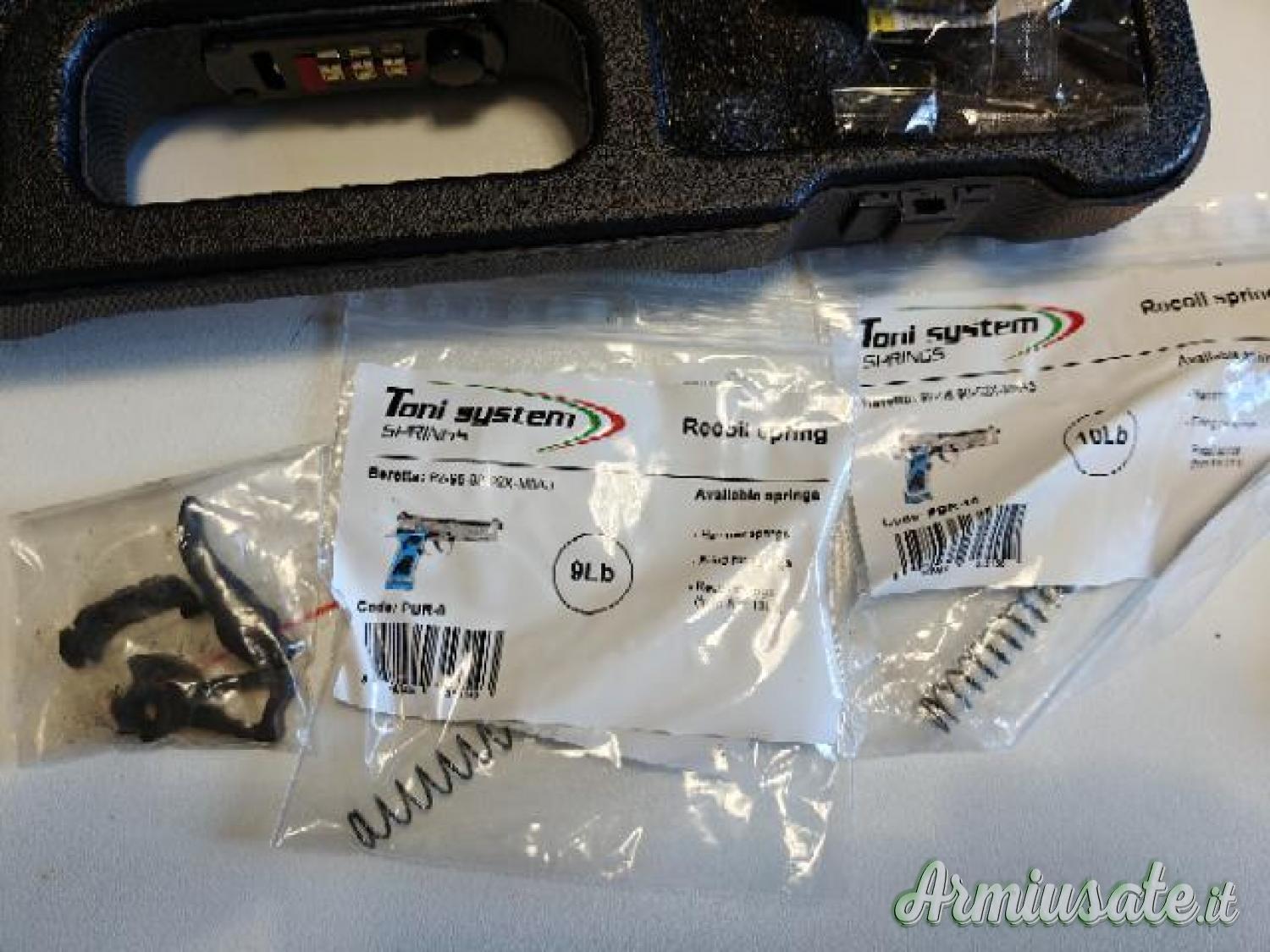 Modifiche apportate, sgancio caricatore maggiorato, cane Macht, completa di 3 caricatori aggiuntivi, piastrina red dot Toni system e Red Dot C-More RTS2B-6 moa acquistato Marzo 2025, guancette tonisystem Slim e Large con fondina scheletrata Beretta e molle alleggerite 9 e 10 libre.