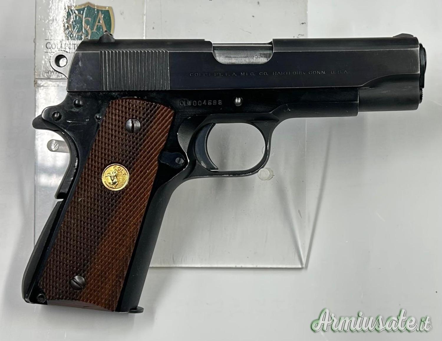 La prima compatta di casa Colt, oltre ad essere la prima semiauto con fusto in lega leggera, matricola con prefisso “CLW”, condizioni splendide, brunitura originale con leggeri segni di utilizzo negli spigoli, canna e meccanica perfette, guancette e caricatori originali; scritte pre-70