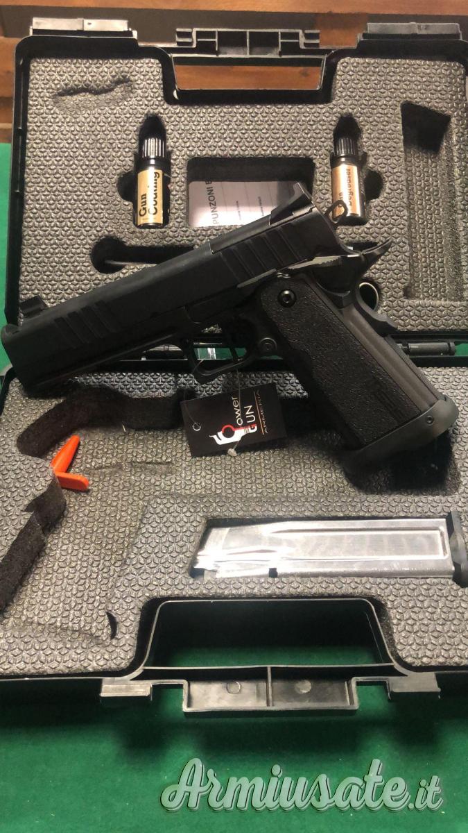 Moderna pistola 1911 cal. 9x19 mm, progettata come fusto bifilare completo per caricatore a 2 file da 17 colpi. Lunghezza canna 5" (Duty 127 mm) con compensatore.