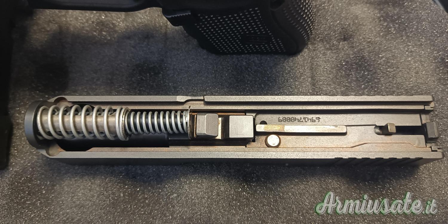 Monta sgancio caricatore maggiorato, hold open maggiorato, disconnettore alleggerito e maritime cups, tutti ricambi originali Glock, più pezzi originali. Inoltre si vende con tutta la dotazione di serie, ovvero 2 caricatori da 12 colpi (10+2) con fondello +2, set di dorsalini con attrezzo per smontaggio, carichino, scovolo, documentazione e valigetta.