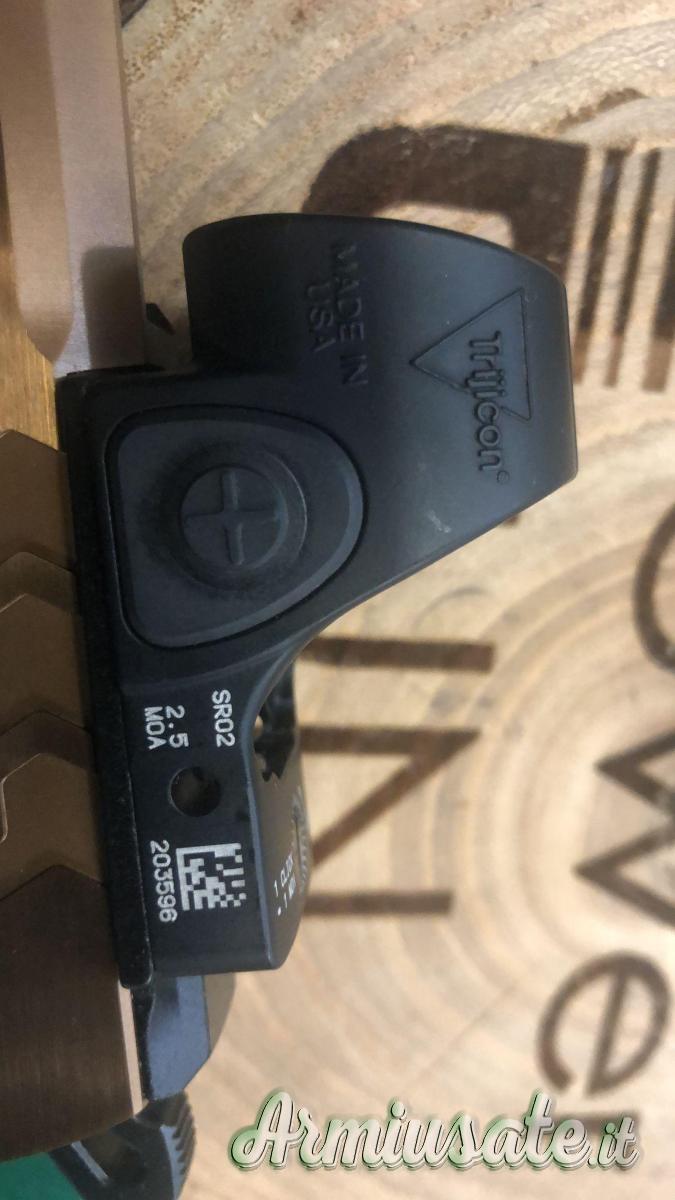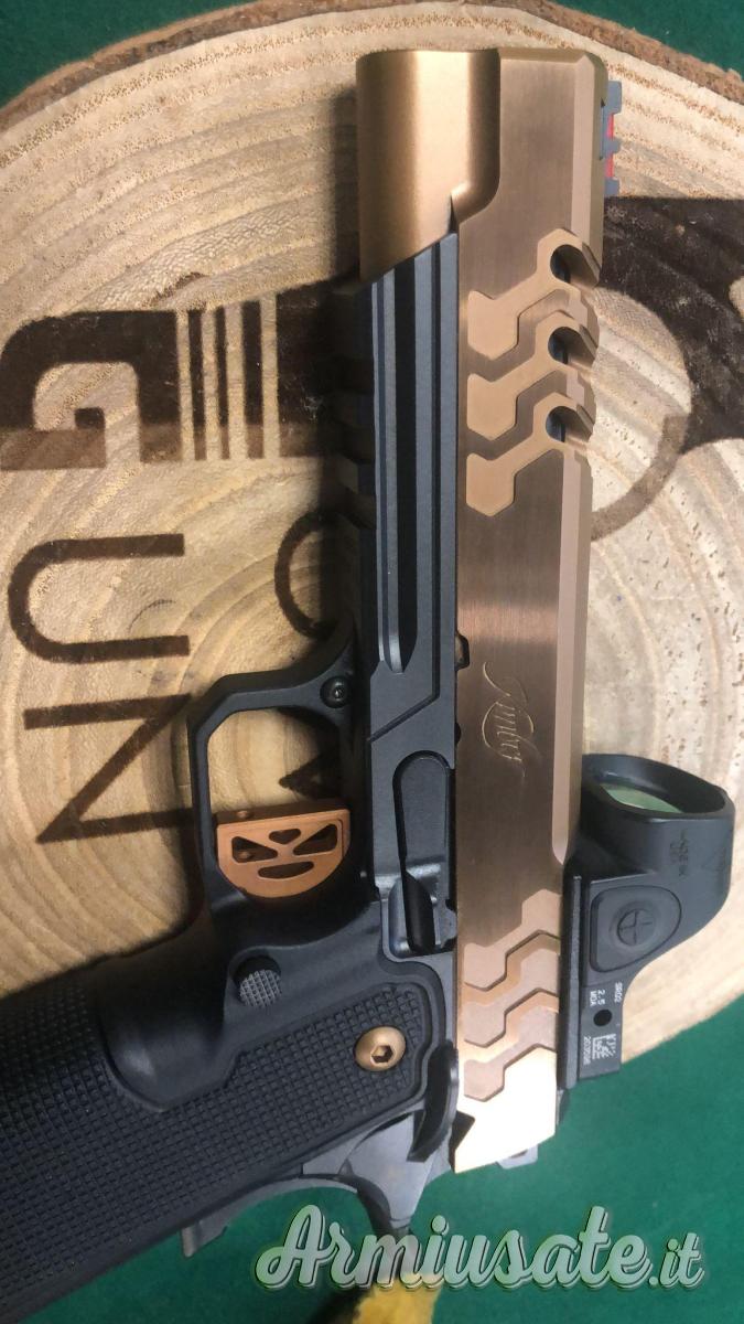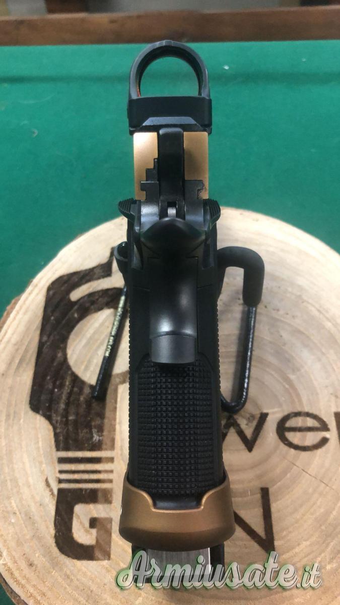 La finitura del fusto è DLC (Diamond Like Coating) e all’imboccatura del caricatore si trova una svasatura che favorisce il cambio rapido del caricatore. Il carrello è in acciaio inox con finitura satinata e brunitura DLC ed è predisposto per il montaggio diretto dell’ottica a punto rosso con una interfaccia prodotta dallo specialista americano C&H Precision Optic con impronta RMR, RMSc, DPP, ACRO e 509T. Una slitta Picatinny permette di fissare al sottofusto eventuali dispositivi di illuminazione o puntatori Laser.
