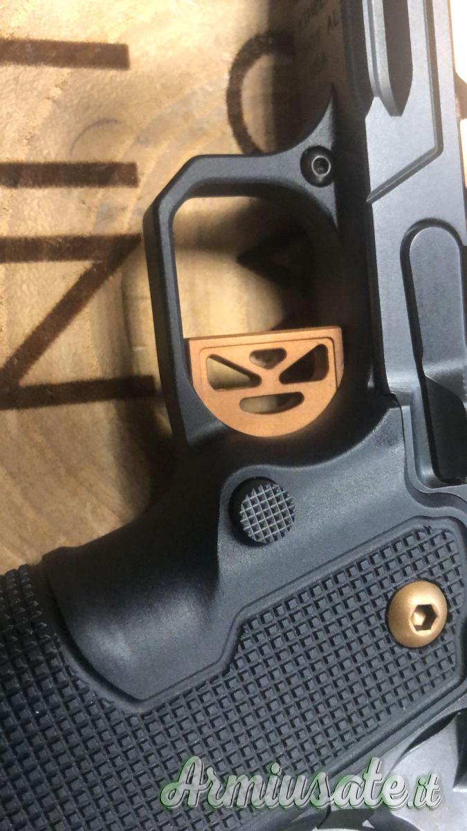 La pistola è stata costruita dichiaratamente attorno al raffinato gruppo di scatto “GT Match Grade” che secondo le dichiarazioni del produttore è completamente privo di grattamenti. Il grilletto piatto è in alluminio macchinato dal pieno e ha sulla faccia anteriore un grano che permette di regolare la sua precorsa. Il peso di sgancio è di 3,5 libbre, ovvero 1580 grammi. Il reset dovrebbe essere netto e cortissimo. L’impugnatura in alluminio ospita un caricatore bifilare con capacità di 17+1 colpi nei modelli in calibro 9 Luger.