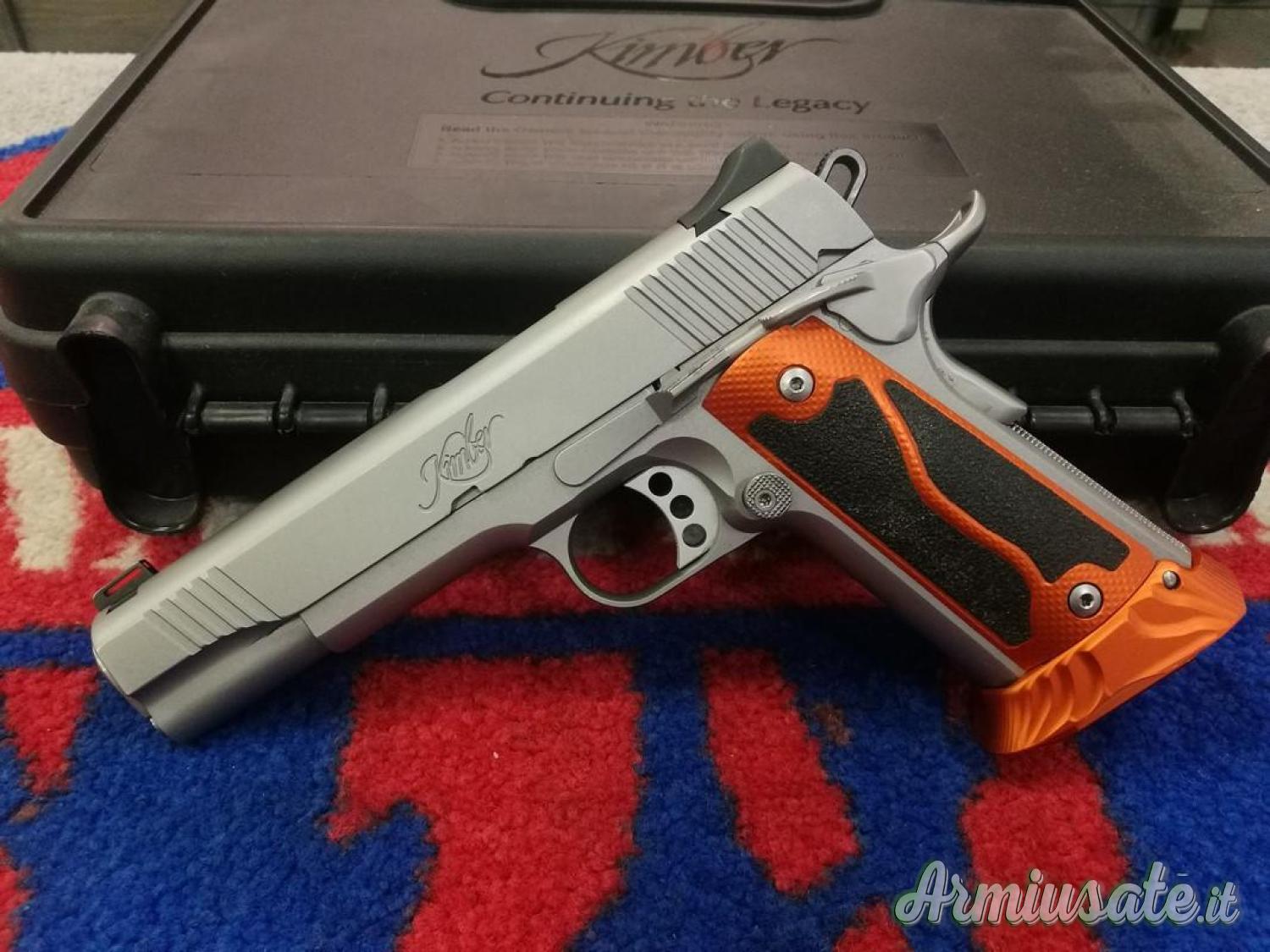 Pistola Kimber mod STAINLESS II cal. 45 ACP, guancette minigonna molle, leva Hold Open Custom, 6 caricatori supplementari.