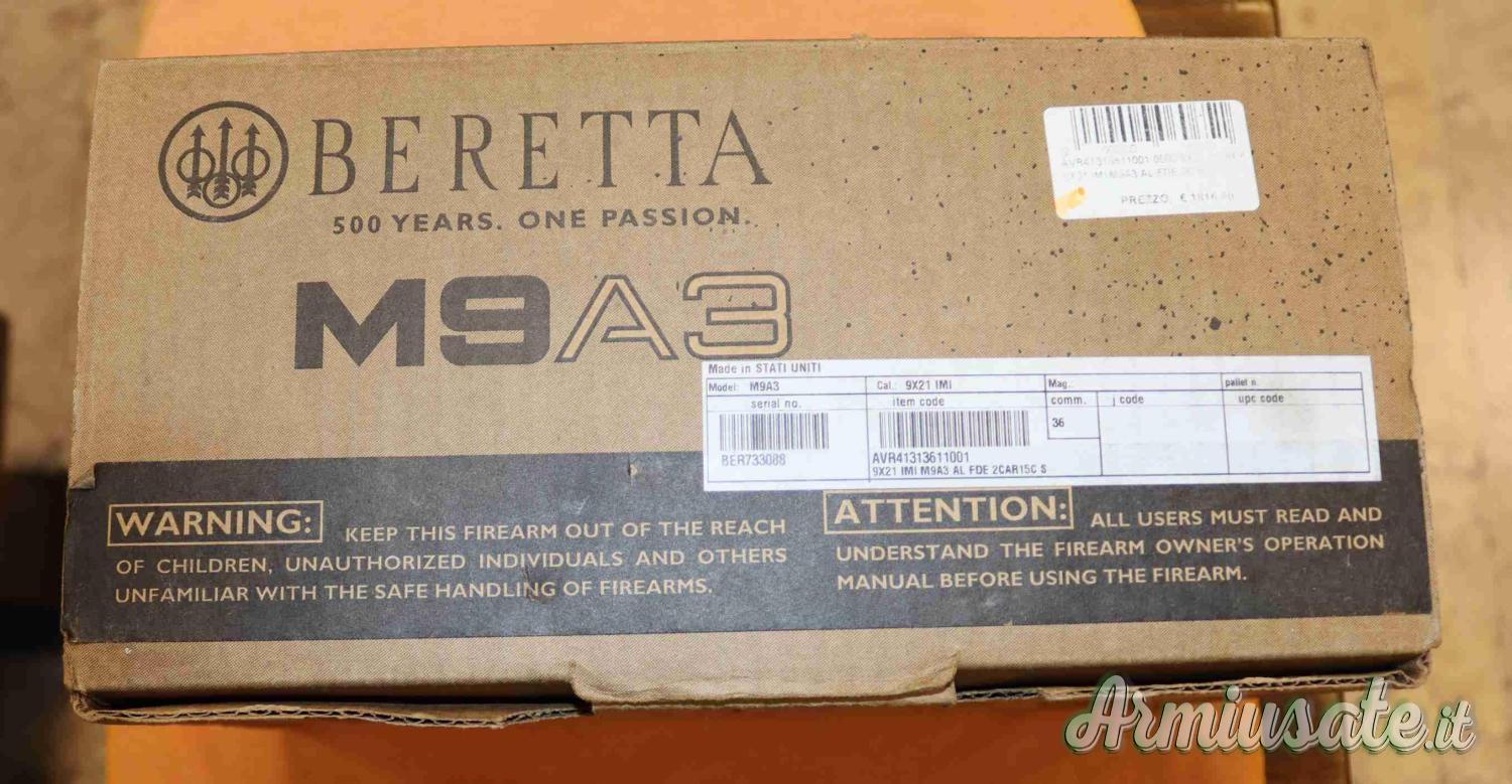 (77/93/06) Pistola Beretta M9A3 in calibro 9X21 classificata sportiva solo provata praticamente nuova. Completa di corredo come da foto.Eventuali aloni o macchie che potete vedere nelle foto sono residui olio protezione o riflessi del flash.