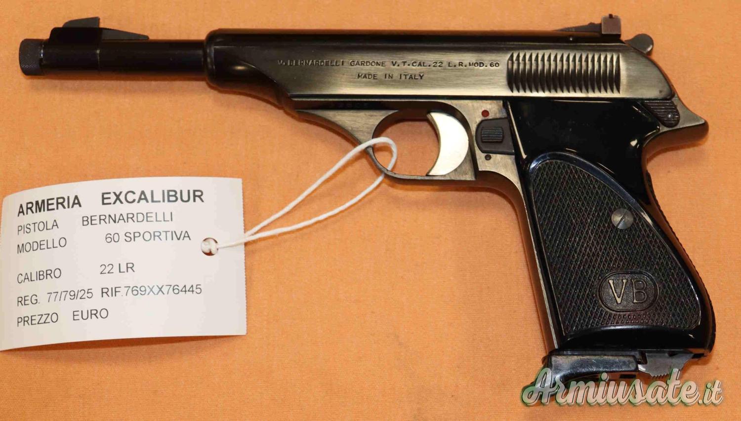(77/79/25)Pistola Bernardelli mod. 60 in calibro 22LR classificata sportiva in buonissime condizioni . Eventuali aloni o macchie che potete vedere nelle foto sono residui olio e grasso di protezione o riflessi del flash.