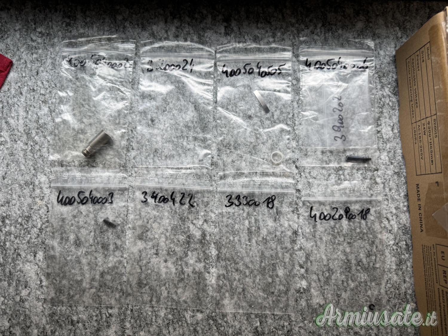 Codici ricambio indicati sulle singole bustine