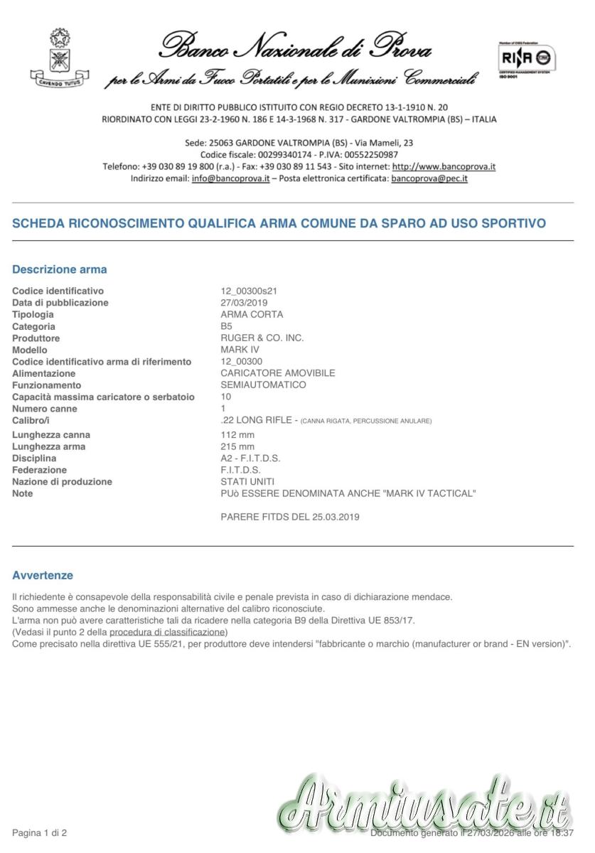 Da aggiungere eventuali spese di spedizione tramite armeria.