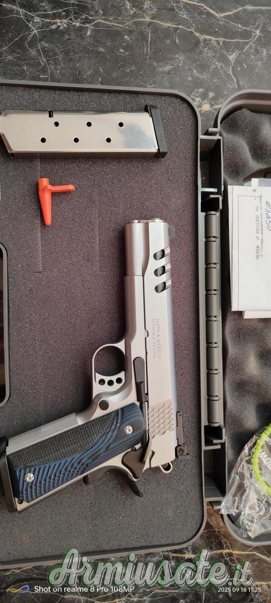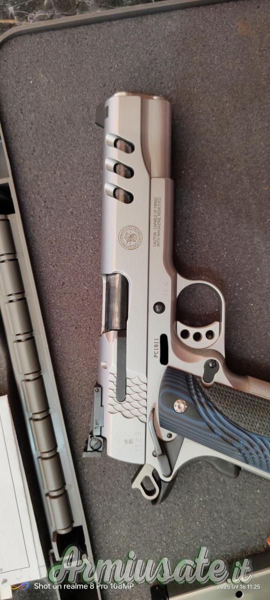 La La Smith&Wesson 1911 Performance Center monta una doppia leva della sicura manuale, a destra e sinistra, entrambe poco sporgenti. Quanto all’impugnatura davanti e dietro c’è una fitta zigrinatura a 30 cuspidi per pollici quadrato.