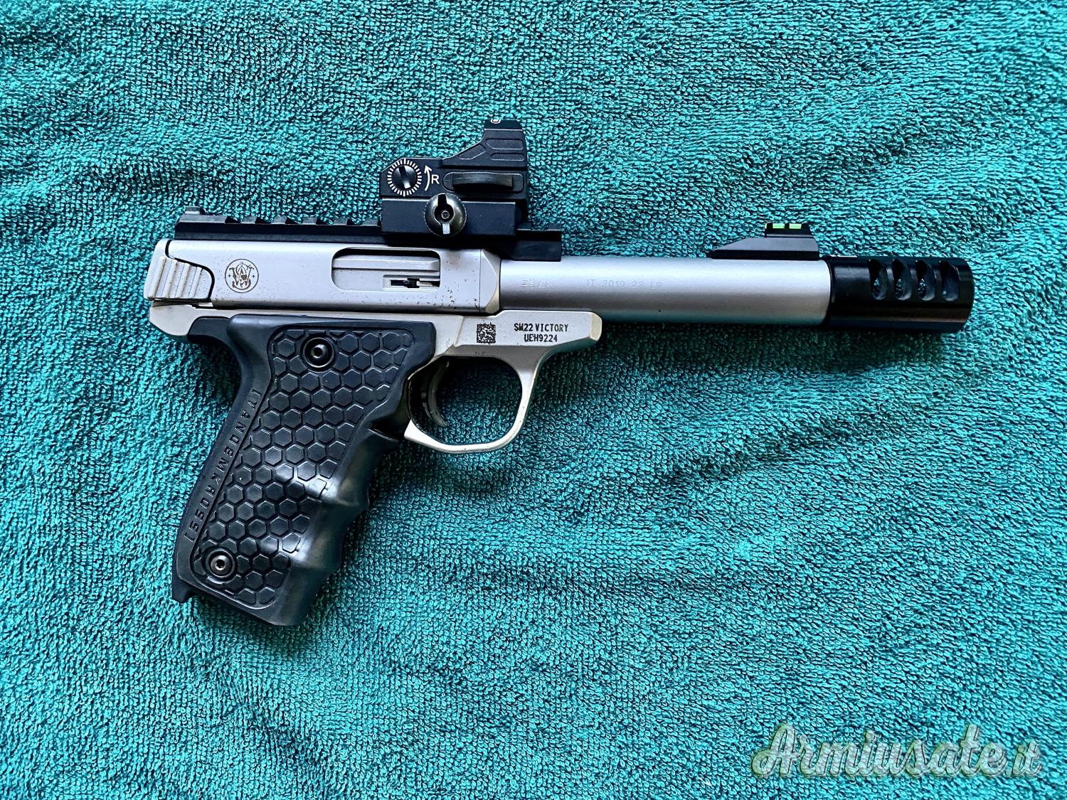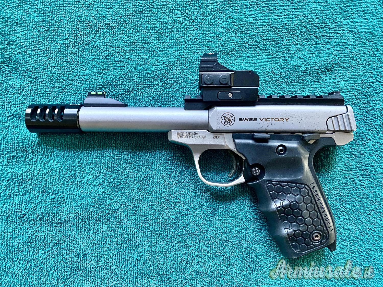 Arma con grip tandemcross, punto rosso e compensatore dedicato incluso.