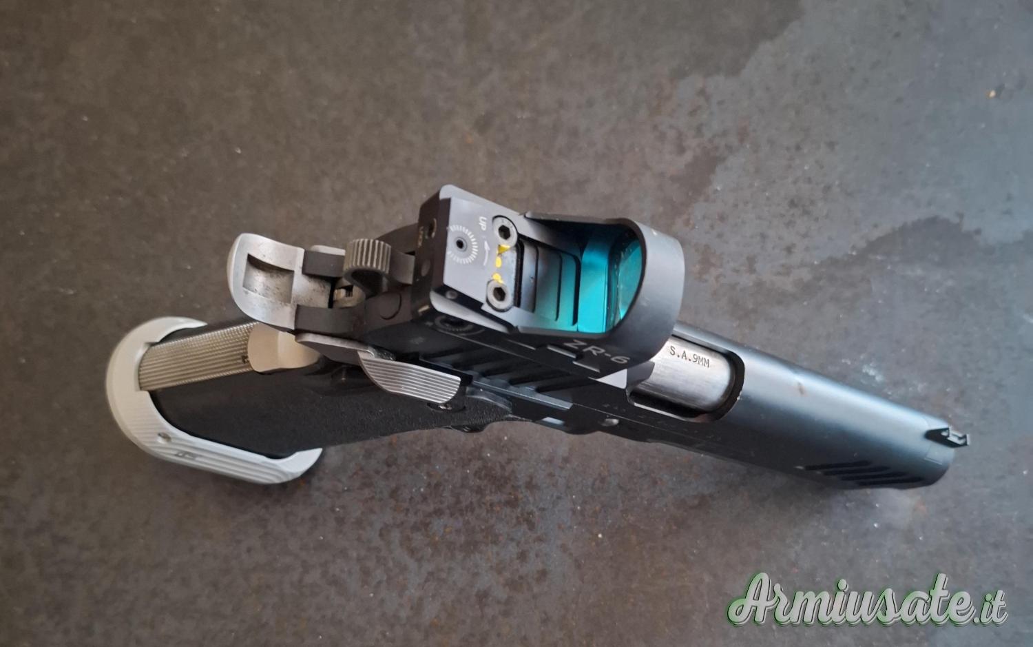 Minigonna, piastrina sia tipo A che tipo B della toni system, red dot toni system acquistato Gennaio 2026 Modello ZR6 - 6 Moa. Ha anche come dotazione di serie tacca di mira per poter gareggiare in categoria Standard minor con anche pad conformi e rientra nella scatola Ipsc.
