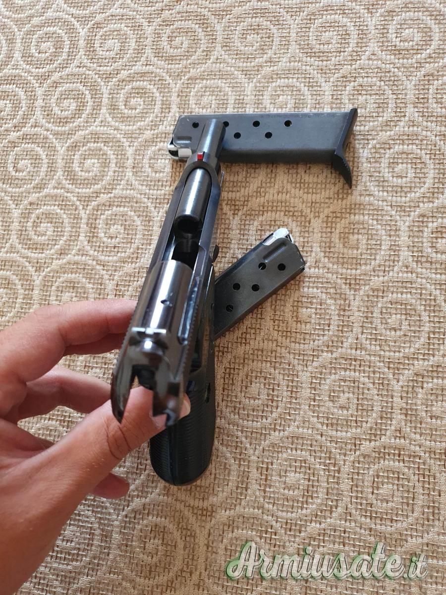 Il tutto vendo in blocco come da foto ad Euro 350. La pistola BERETTA Mod. 70 dal punto di vista estetico e funzionale è stata modificata nel mirino che è stato colorato di rosso (modifica rimovibile con del semplice acetone per riportarla alle condizioni originali) per un tiro più preciso e rapido, inoltre, meccanicamente si è proceduto alla sostituzione della molla del percussore ed una profonda pulizia e sgrassaggio di tutte le componenti per un funzionamento sempre impeccabile e fluido.