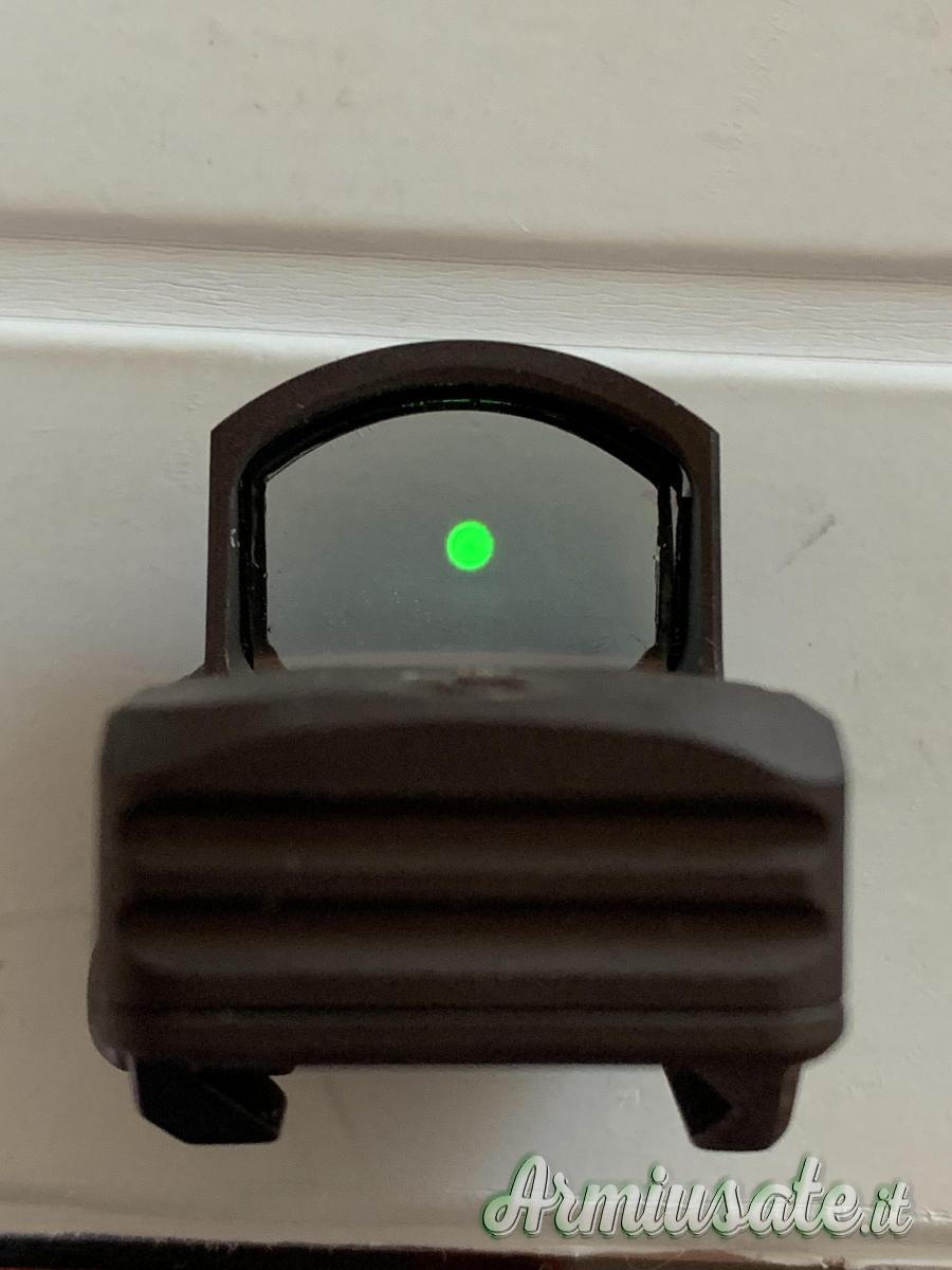 Single dot verde di 4 MOA adatto per armi con predisposizione mos 6 livelli luminosità,regolazione di un click x Moa ,comprensivo di chiave montaggio e viti più slitta per adattamento piccatinny.