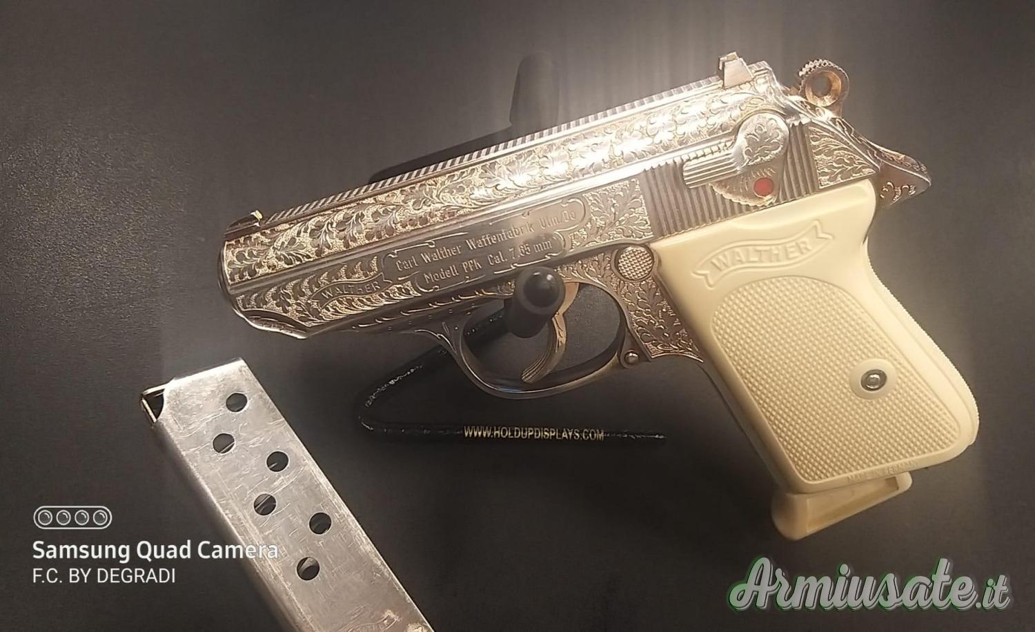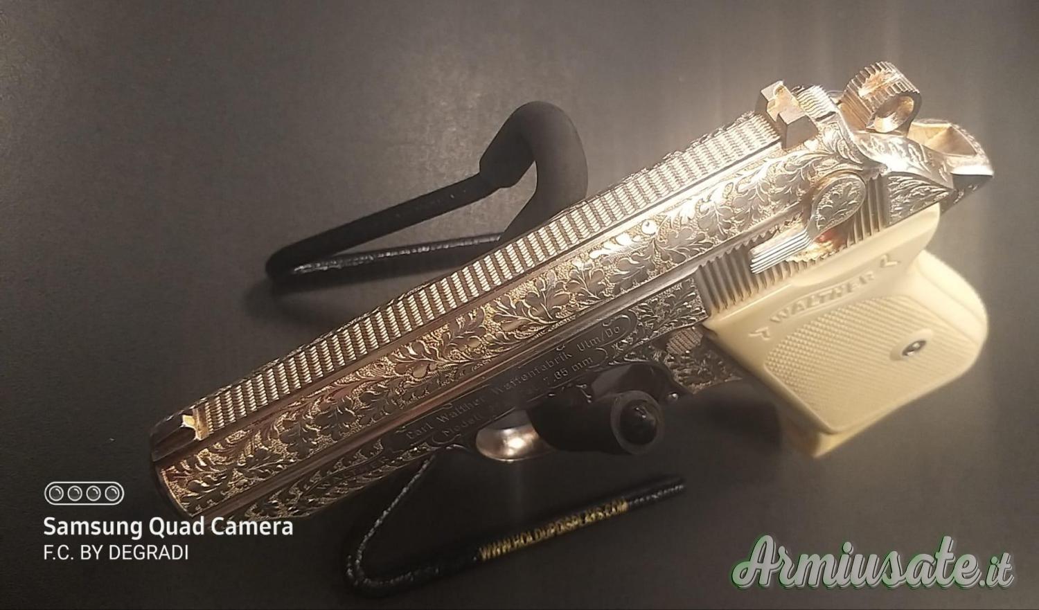 Sono presenti incisioni integrali originali Walther, con guancette in bakelite bianca.