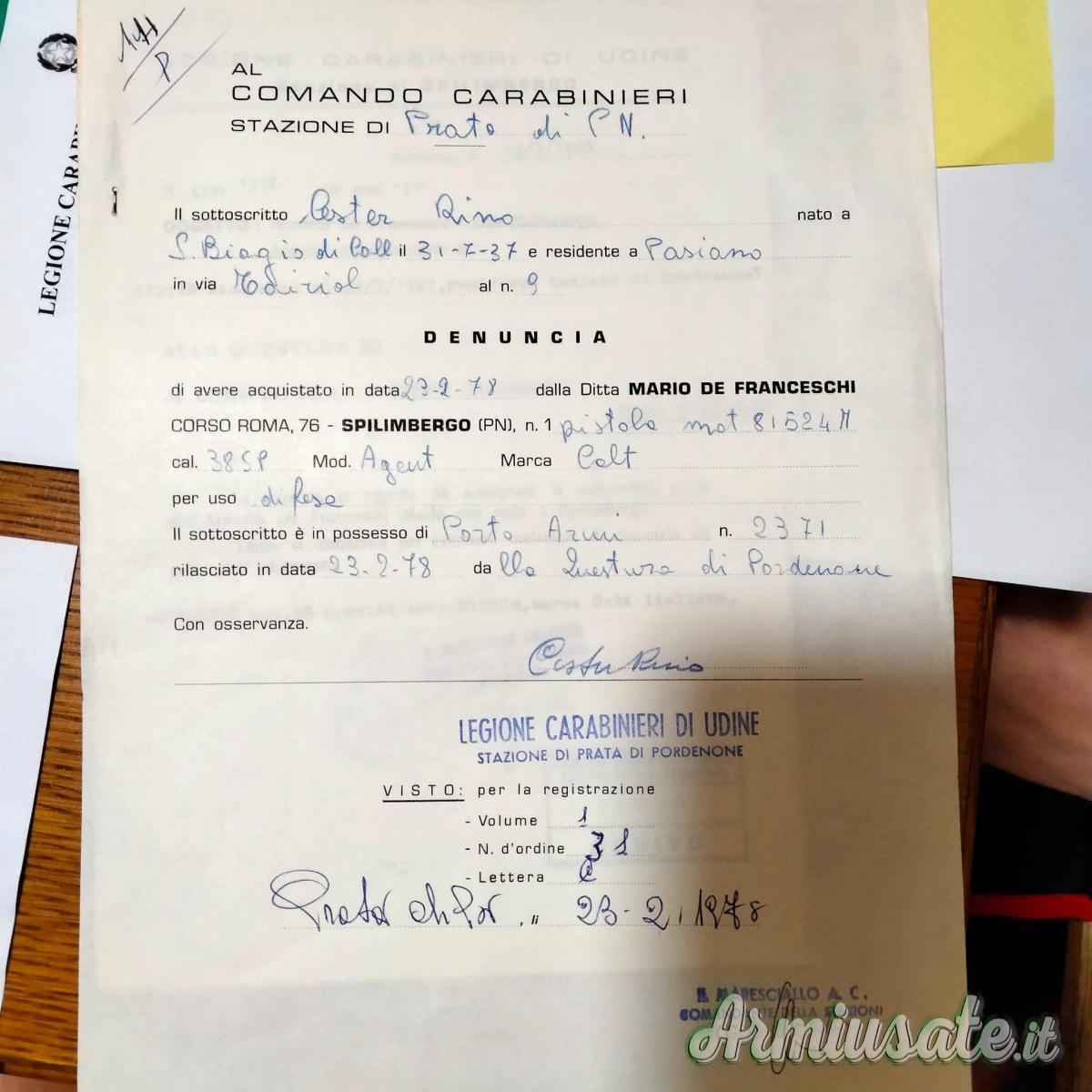 c'è una Colt Agent acquistata nel 1978 , tenuta nel cassetto una Vita intera e mai utilizzata , realmente mai utilizzata fortunatamente , in quanto da mera Difesa Personale
