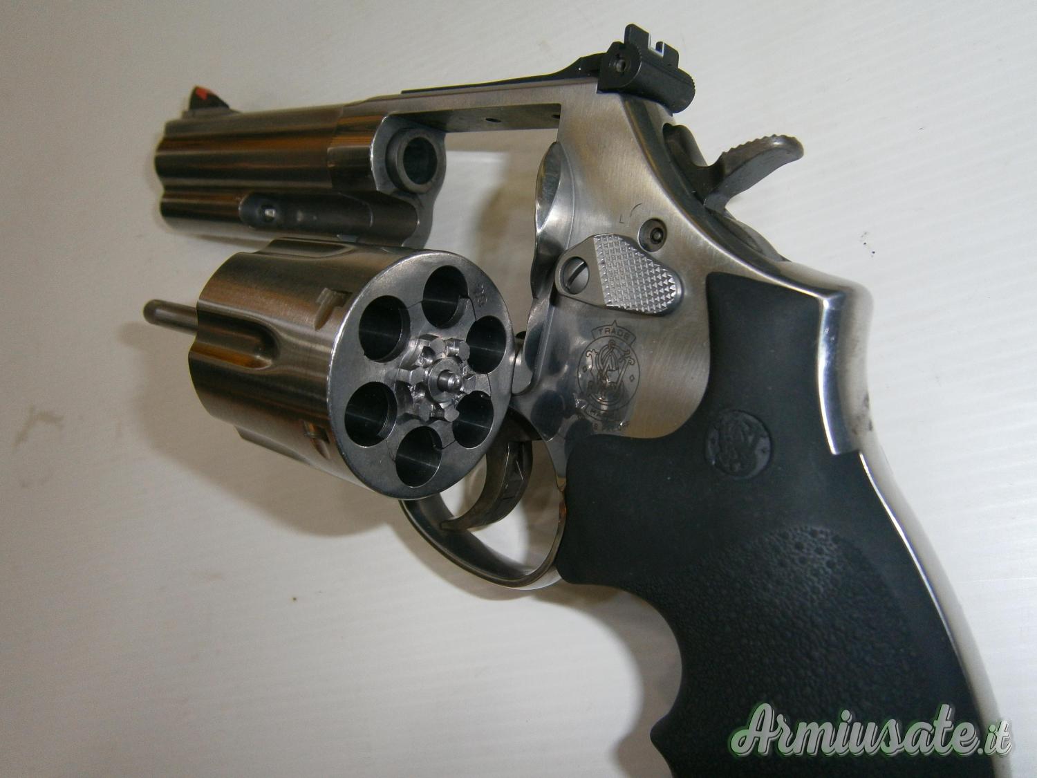 Revolver Smith & Wesson 686 cal. .357 mag. Lo Smith & Wesson 686 utilizza un telaio L, concepito per soddisfare le esigenze degli appassionati di armi da fuoco più seri. Lo Smith & Wesson 686 costruito interamente in acciaio inox, ha un taburo da sei colpi,e una canna da 4".