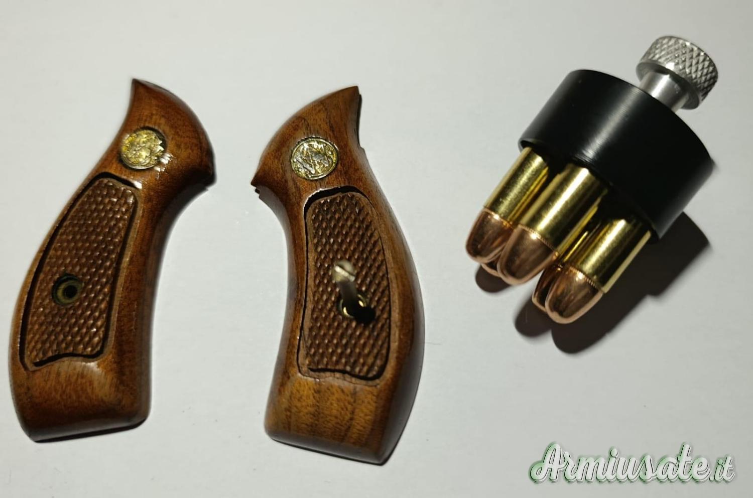 Corredata di speed-loader e guanciole in legno originali.