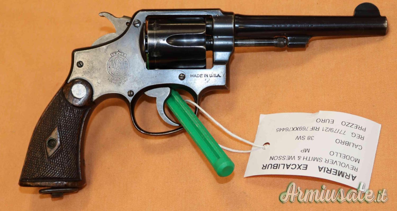 (77/79/21) Revolver Smith Wesson mod. MP in calibro 38SW in buone condizioni. Eventuali aloni o macchie che potete vedere nelle foto sono residui olio protezione o riflessi del flash.