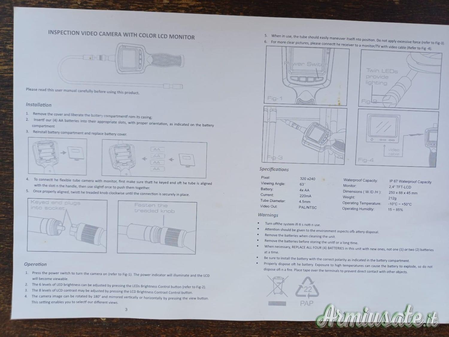 Specifiche-caratteristiche e modalità uso come riportato nelle immagini