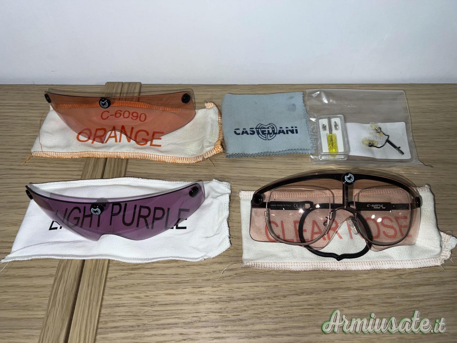 Tre lenti comprese: Clear Rose, Orange e Light Purple, perfette.