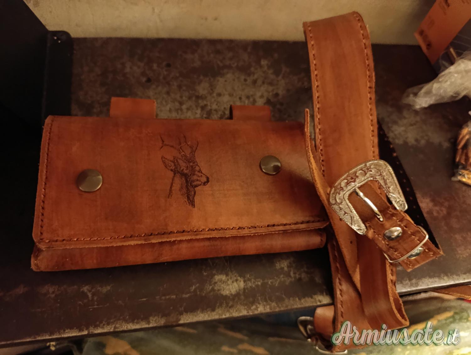 Porta munizioni in calibro 30 in vero cuoi prodotti lavorato artigianalmente con disegno testa di capriolo fatto a mano più cinta per carabina stessa produzione. Chi fosse interessato mi contatti pure in privato grazie