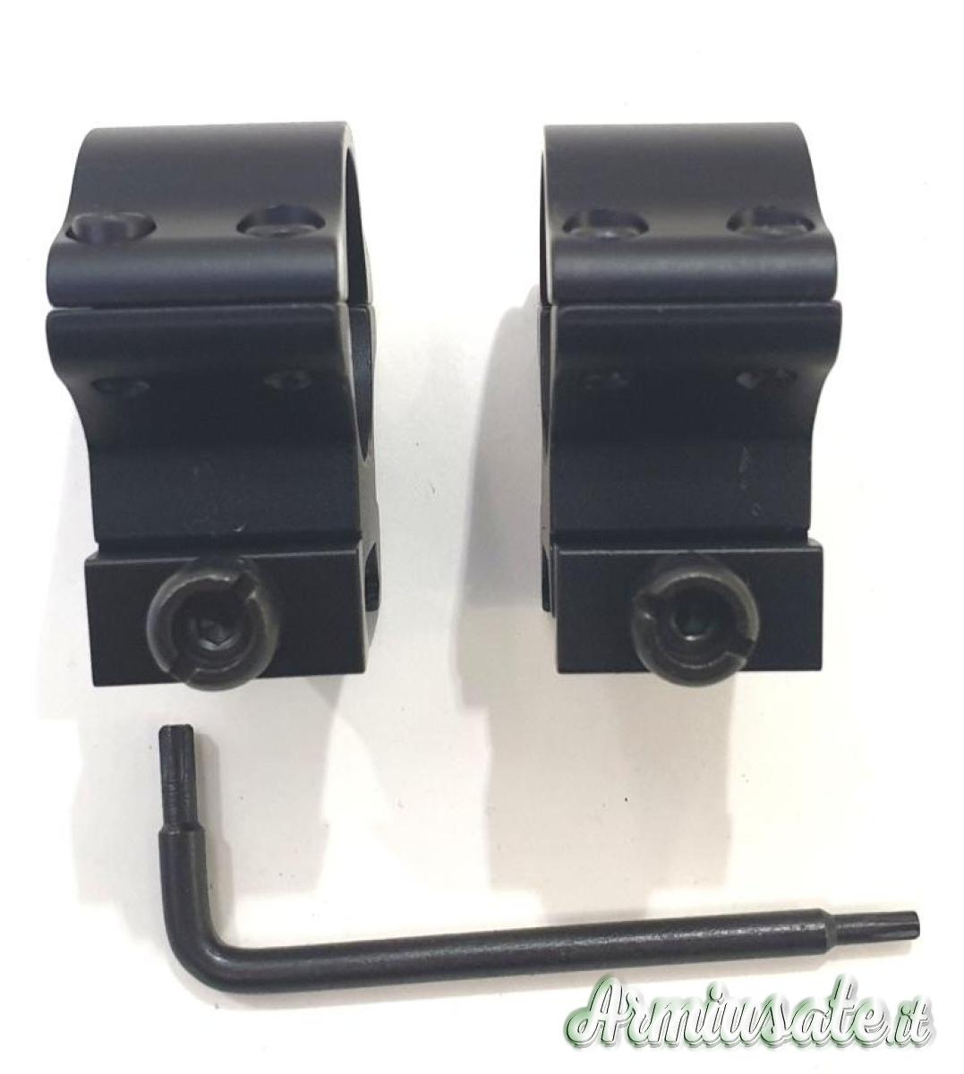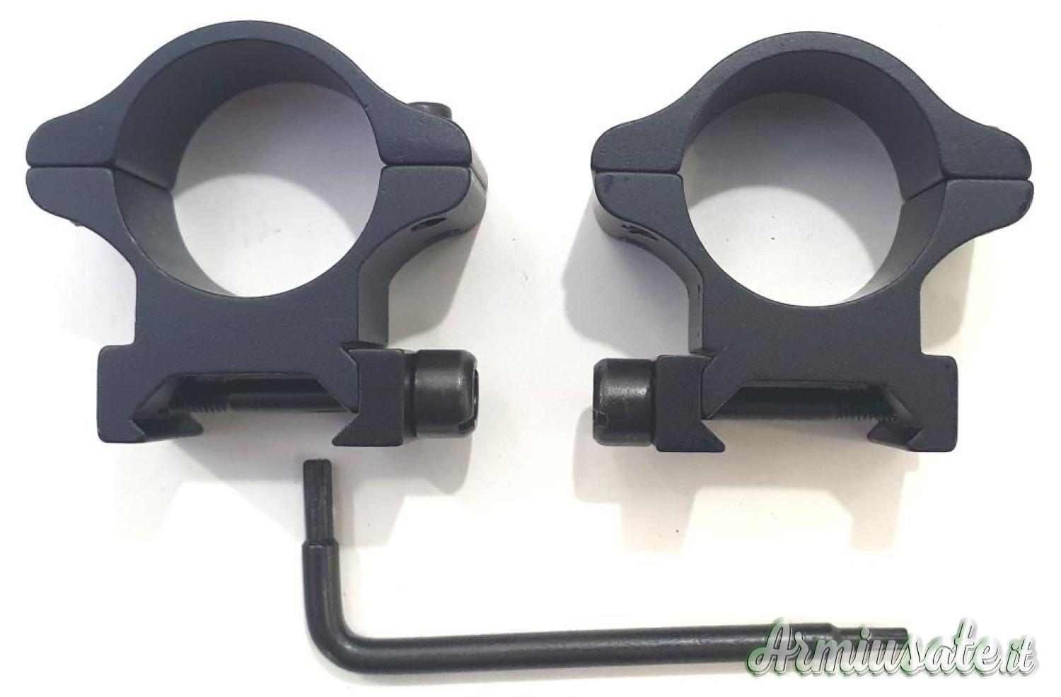 Realizzati in lega di alluminio, fissaggio alla slitta con 1 vite passante, fissaggio ottica con 2 viti Torx