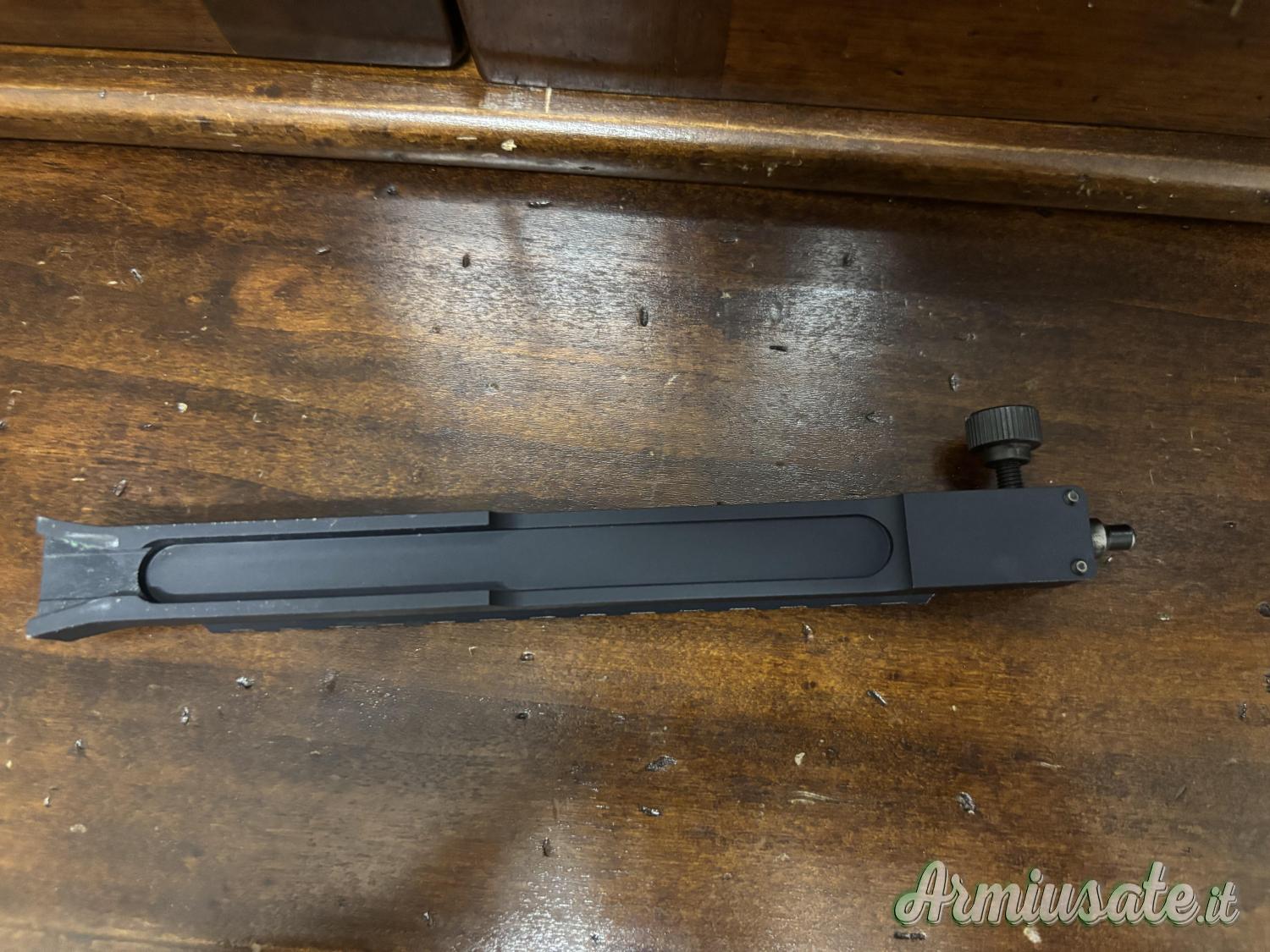 Copia fedele dell’accessorio militare in alluminio. Smontaggio del maniglione e montaggio della base senza ricorrere ad attrezzi.