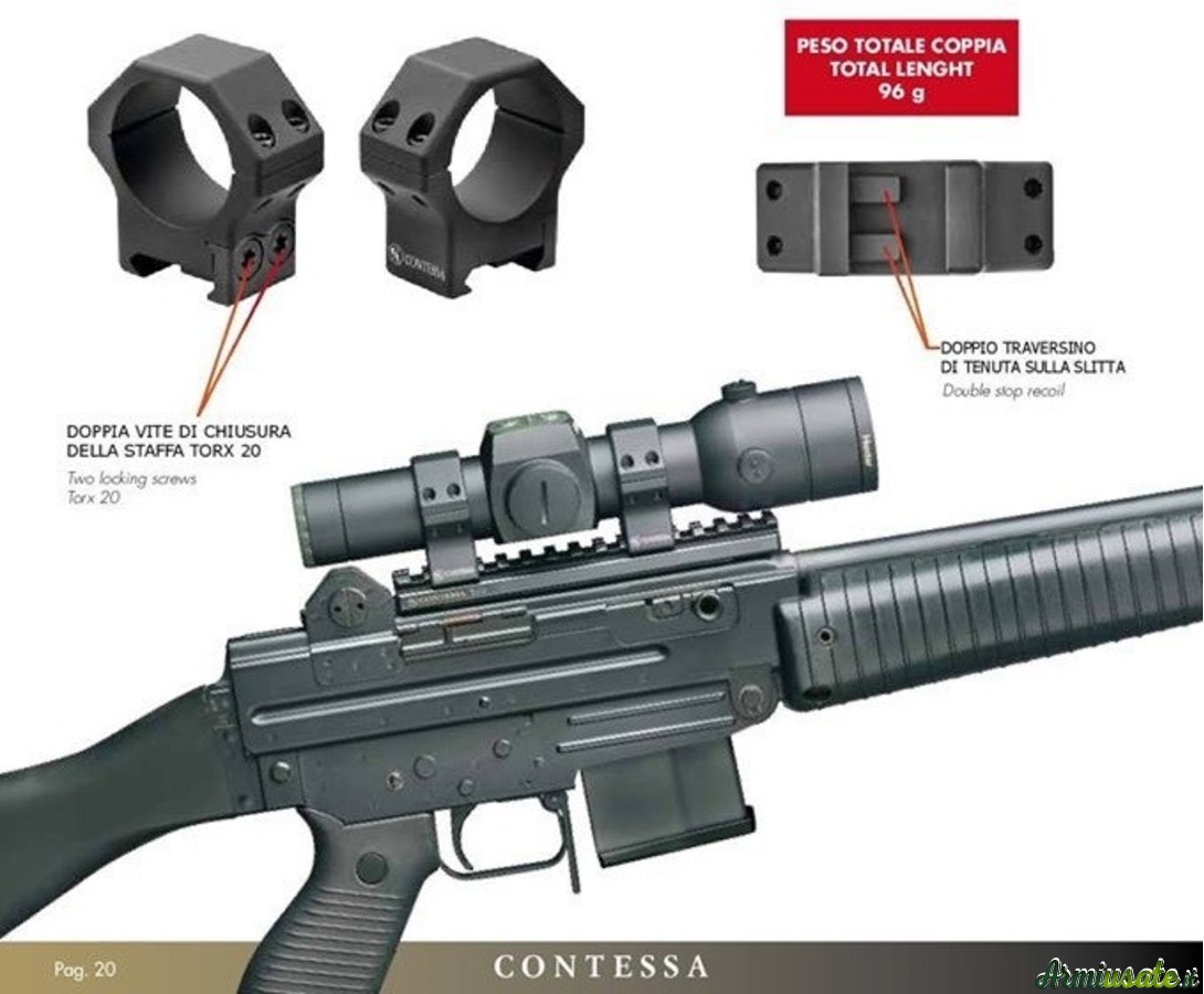 CONTESSA ANELLI IN SPECIALE LEGA LEGGERA E DOTATI DI DOPPIO FERMO INTEGRALE PER SLITTE WEAVER / PICATINNY