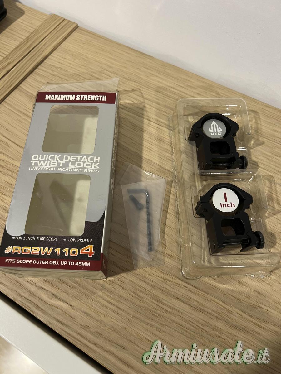 Vendo attacchi UTG da 1 pollice, praticamente nuovi, mai montati solo provati. Spese di spedizione non comprese nel prezzo.